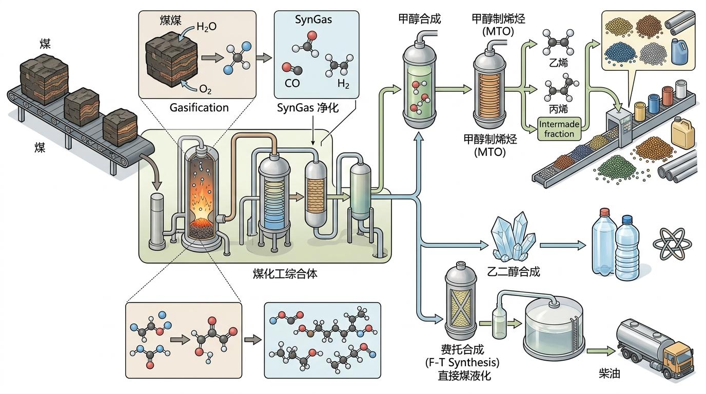 但煤化工也不是万能的:传统工艺的碳排放是天然气制甲醇的8倍,就算用了新技术,单位产品的碳排放量还是比石油化工高,这和“双碳”目标存在短期矛盾。