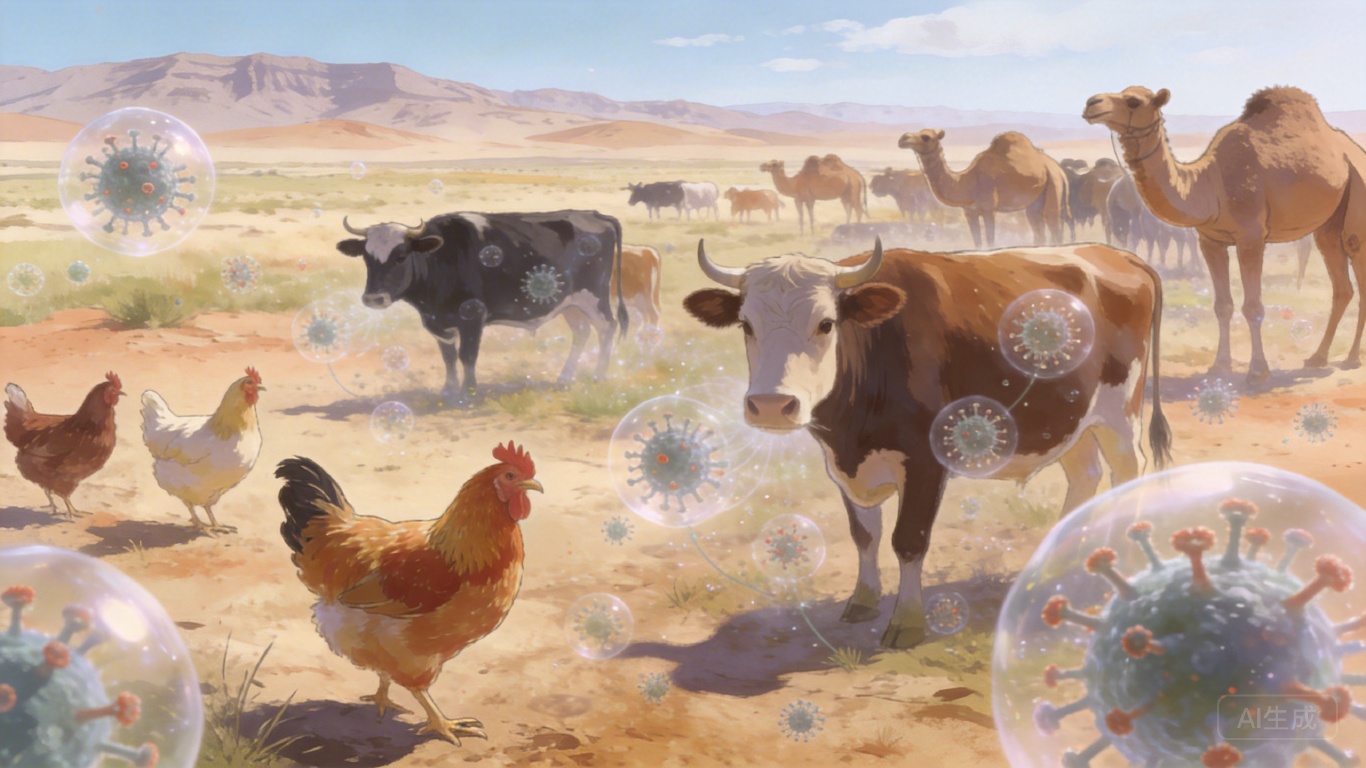 当我们还在紧盯H5N1的跨物种传播时,另一种禽流感已经悄悄完成了跨界渗透。2026年4月,石河子大学团队的研究撕开了这个隐秘的口子:在新疆,H11亚型禽流感不仅已在鸡群中隐秘传播——当地家禽血清阳性率最高达65%,更罕见地在牛和骆驼体内检测到了病毒抗体。这是H11病毒自然感染哺乳动物的直接证据,而新疆,这个欧亚候鸟迁徙的十字路口,正是这场病毒隐秘扩散的关键枢纽。为什么偏偏是新疆?H11又藏着怎样的跨物种密码?