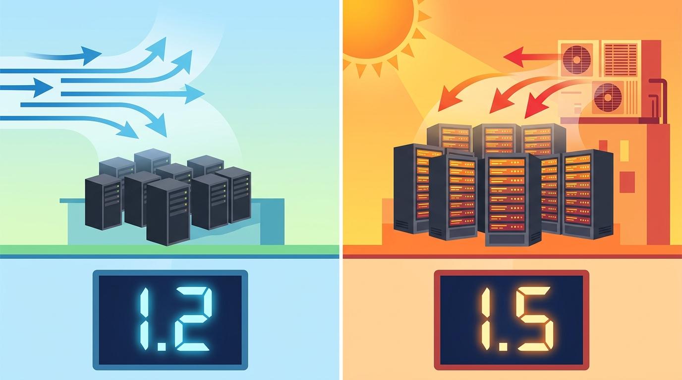 首先是免费的天然空调。数据中心的能耗里,冷却占了近三分之一,而乌兰察布的低温天气,能让数据中心全年大部分时间用自然风冷替代空调。这里新建数据中心的PUE(电源使用效率,越接近1越节能)能严控在1.2以下——而东部城市的数据中心,PUE通常要到1.5甚至更高。别小看这0.3的差距,一个10兆瓦的大型数据中心,一年就能省下近千万度电。