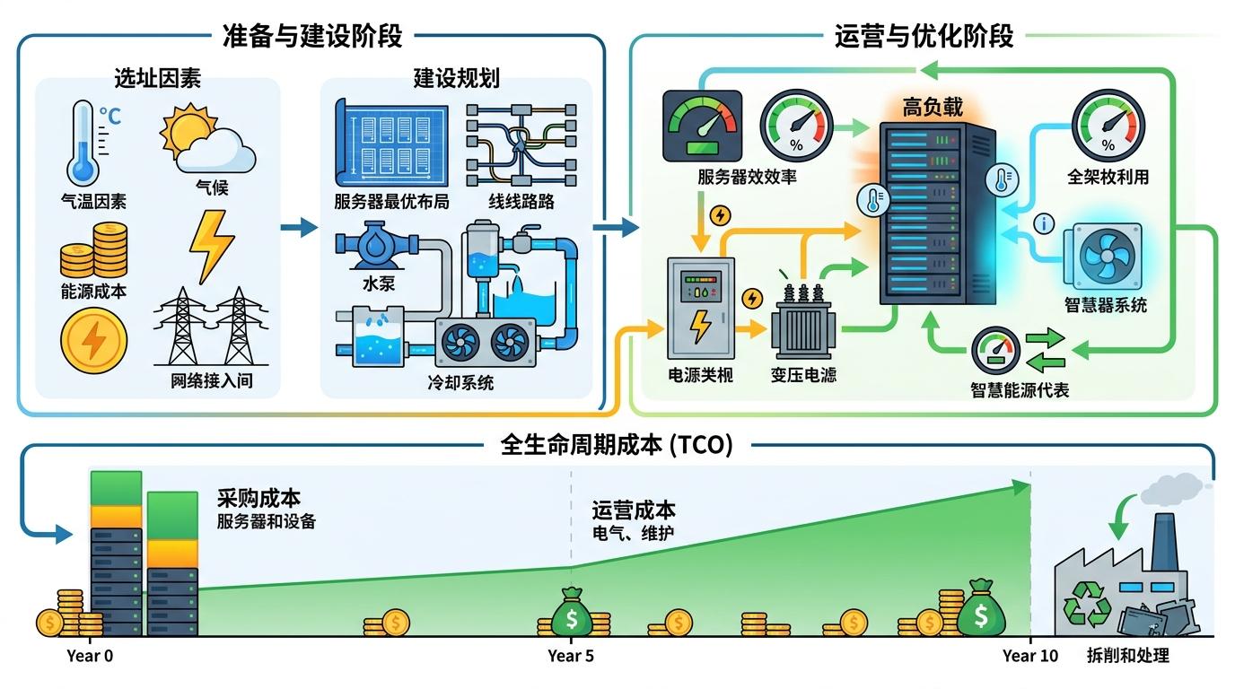 但这一次,他们要把这套逻辑从比特世界推进到原子世界。自建数据中心,意味着要把“效率最优”从模型训练,贯穿到机房的每一个细节:从选址时的气温、电价,到建设时的机柜布局、冷却系统,再到运营时的电力调度、服务器利用率。他们要算的不再只是每一轮训练的算力成本,而是数据中心全生命周期的总体拥有成本(TCO)——从服务器采购到十年后报废的每一分钱都要抠到极致。