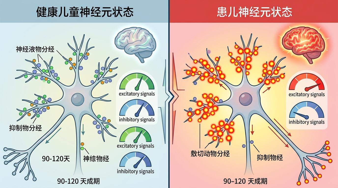 这也解释了患儿早期的多动、注意力不集中:不是孩子“调皮”,是他们的大脑根本停不下来。