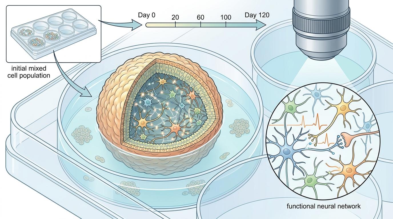 你可以把这个过程理解为“用患者自己的细胞,在培养皿里重演一遍大脑发育”。为了模拟真实大脑的细胞多样性,他们还搞了个“游乐园模型”:把多个孩子的神经元混在一起培养,避免单个细胞的特殊性影响结果。就这样,这些细胞在培养皿里长了120天,形成了能放电的功能性神经网络——一个缩小版的患病大脑。