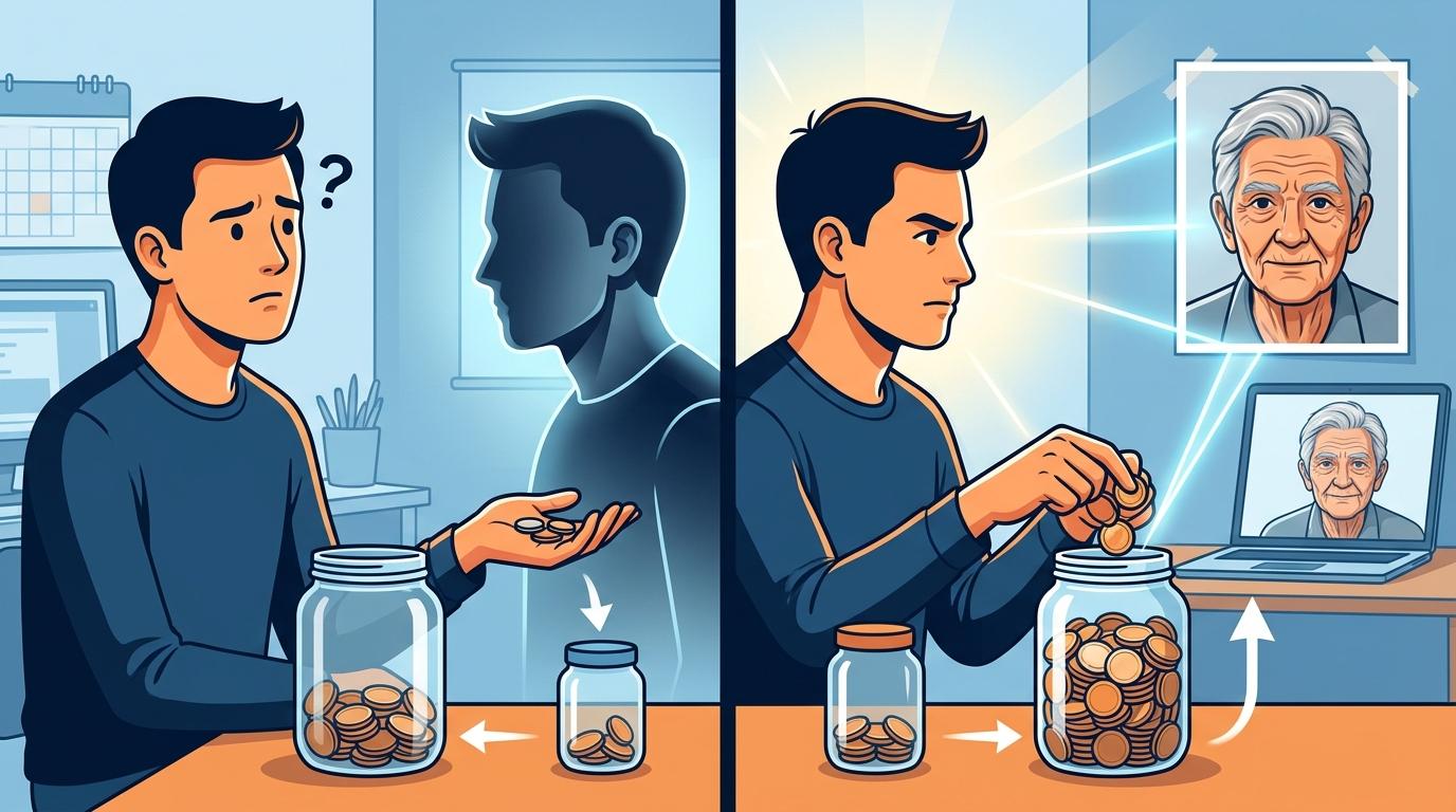 既然大脑天生把未来的我们当外人,那我们就得主动把这个「陌生人」拉进生活。最直观的方法是「视觉化」:用AI生成自己80岁的照片,贴在冰箱上、电脑桌面。Hershfield的后续实验显示,看过自己老年照片的人,在模拟储蓄任务中给退休账户分配的金额是对照组的两倍。当你看着那张布满皱纹的脸时,大脑会突然反应过来:哦,这不是别人,是老了的我。