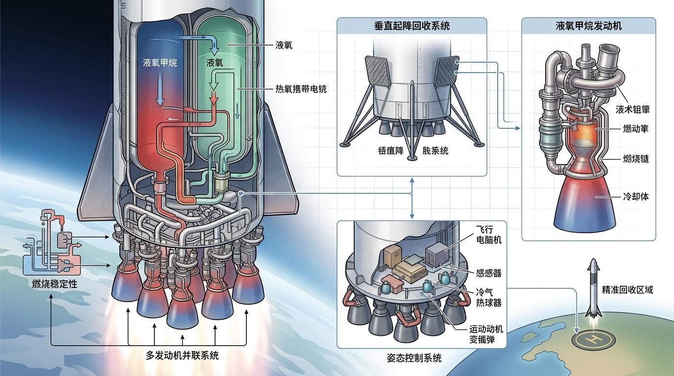 如果把火箭发射比作一场高空走钢丝,那么民营团队手里的平衡杆,比国家队的要细上太多。液氧甲烷发动机的燃烧稳定性、垂直起降回收的姿态控制、甚至是零部件制造的一致性,每一项都是需要用真金白银和海量试错堆出来的硬骨头。就像你在家用燃气灶上同时开9个火眼,既要保证每个火的大小完全一致,又要让整个灶台在高温下不晃动——这就是多发动机并联的真实难度,而他们要做的,是把这个灶台搬到100公里的高空,再让它精准落回指定的10平方米范围内。