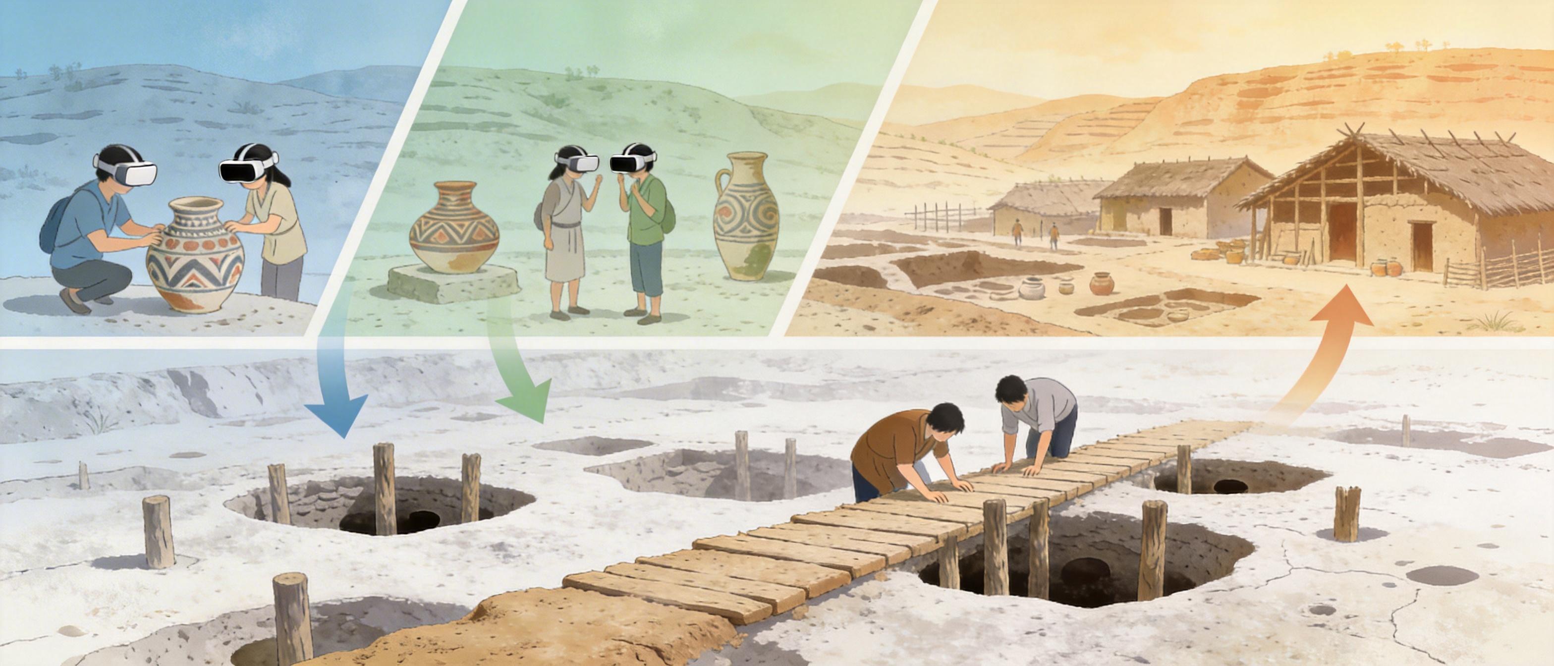 答案藏在「沉浸式体验」的重构里。不同于传统博物馆的单向输出,大河村遗址把7000年前的仰韶村落变成了可触摸的立体课堂:游客踩着黄土栈道俯身看房基柱洞,戴上VR「拿起」彩陶拆解结构,甚至化身「文明传承者」跟着NPC完成解谜。这种「让遗址自己说话」的逻辑,本质是把观众从旁观者变成参与者——就像把一本线装史书,改成了读者能提笔续写的互动小说。