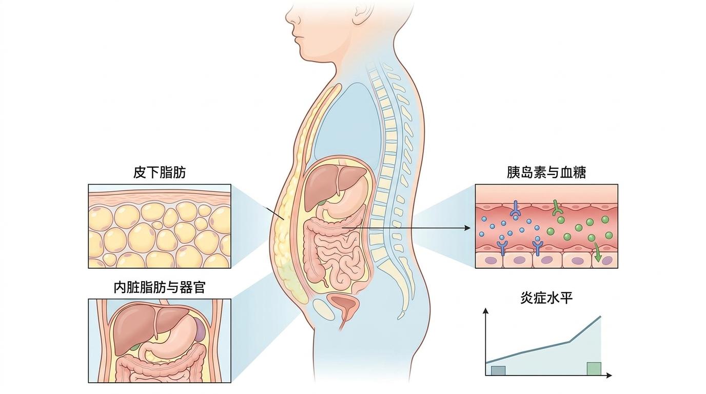 你可以把孩子的代谢系统想象成一个弹性十足的橡皮筋:刚开始超重时,橡皮筋还能靠自身弹性撑住,各项指标看起来没异常;但随着体重持续超标,橡皮筋被越拉越长,弹性逐渐耗尽。研究里的MHO孩子就是处于“橡皮筋还没断”的阶段——他们的脂肪大多堆积在皮下而非内脏,炎症水平暂时较低,胰岛素还能勉强维持血糖稳定。但这种平衡极其脆弱。