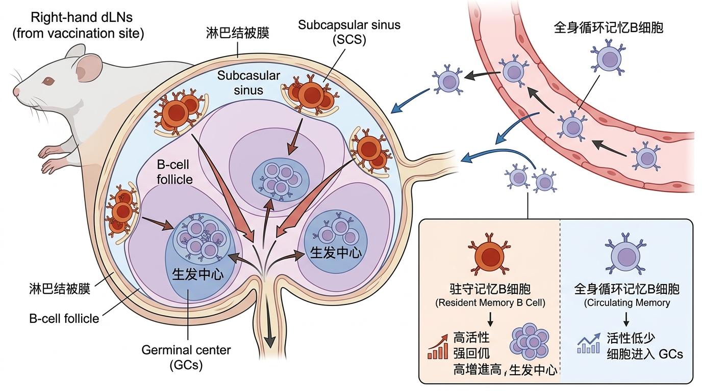 要理解这个发现,得先搞懂两个关键角色:记忆B细胞和引流淋巴结。