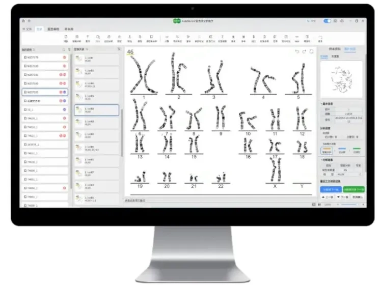 染色体核型分析——简单说就是数清楚人类细胞里的46条染色体,看有没有缺胳膊少腿或者数量不对,这是产前诊断、辅助生殖和血液病确诊的关键一步。传统流程里,医生要先在显微镜下找合适的细胞图像,再手工把每条染色体剪下来、排好队,一个样本就要耗30多分钟,大医院一天积压几十份,报告周期自然拖得很长。