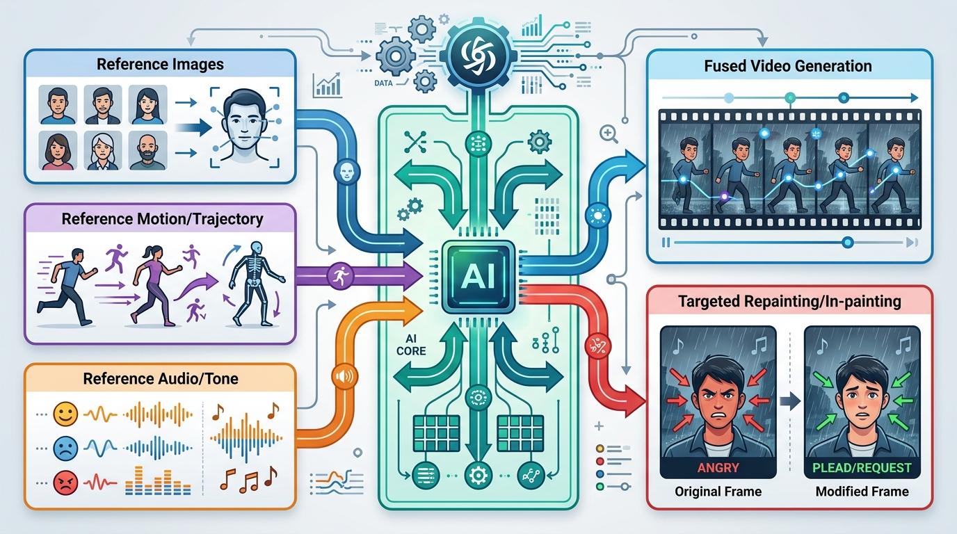 吴永辉团队的厉害之处,不止是突破技术瓶颈,更是把复杂的AI能力,变成了普通人能上手的工具。Seedance 2.0的「@引用」系统,就像给AI安了个精准导航——你可以指定某张图片的人物脸型,某段视频的动作轨迹,某段音频的情绪基调,AI会把这些元素无缝融合成新的视频,甚至支持局部重绘:把人物的愤怒表情改成恳求,同时保留背景的雨声和音乐不变。