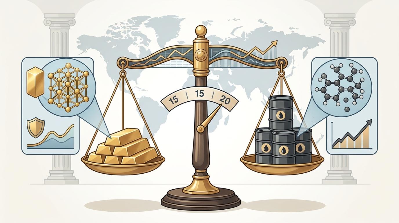 要理解这场反转,得先搞懂「金油比」——简单说就是一盎司黄金能买多少桶原油,它是衡量市场风险偏好和资产价格错配的核心指标。过去半个世纪,这个比值的历史均值稳定在15到20之间,像一个精准的天平,两端挑着黄金的避险属性和原油的通胀属性。