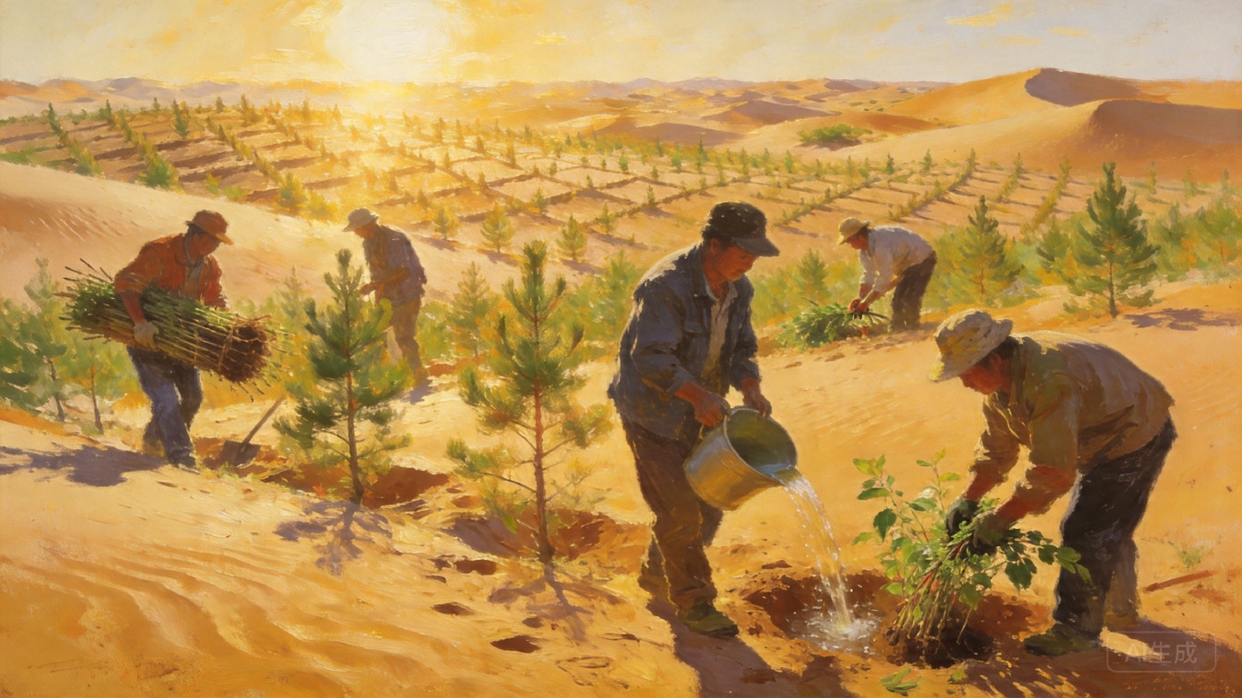 但库布其也从未回避困境:植被覆盖率提升的同时,蒸散发量每年增加5.17毫米,地下水的补给压力越来越大;东部的治理成效显著,西部的流动沙丘仍在考验着技术的极限。这些问题没有捷径可走,只能靠持续的监测、调整和技术迭代——就像治沙人常说的,沙漠里种活一棵树,比养活一个孩子还难,要懂它的脾气,要耐得住等待。