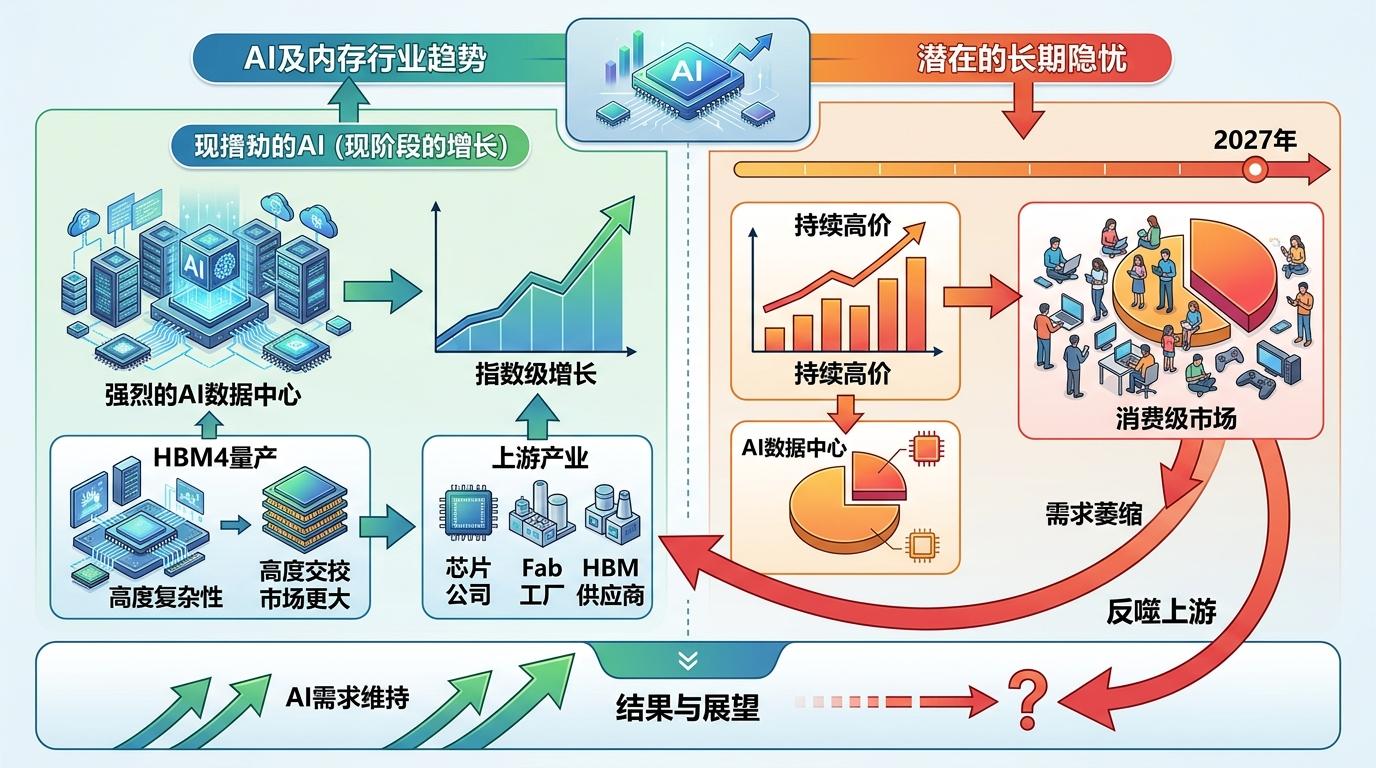 当然,这场热潮里也藏着隐忧。有分析师警告,若高价持续到2027年,终端需求的萎缩可能反噬上游,毕竟消费级市场的盘子远大于AI数据中心。但至少现在,AI对存储的需求还在指数级增长,HBM4的量产只会进一步拉高行业门槛。
