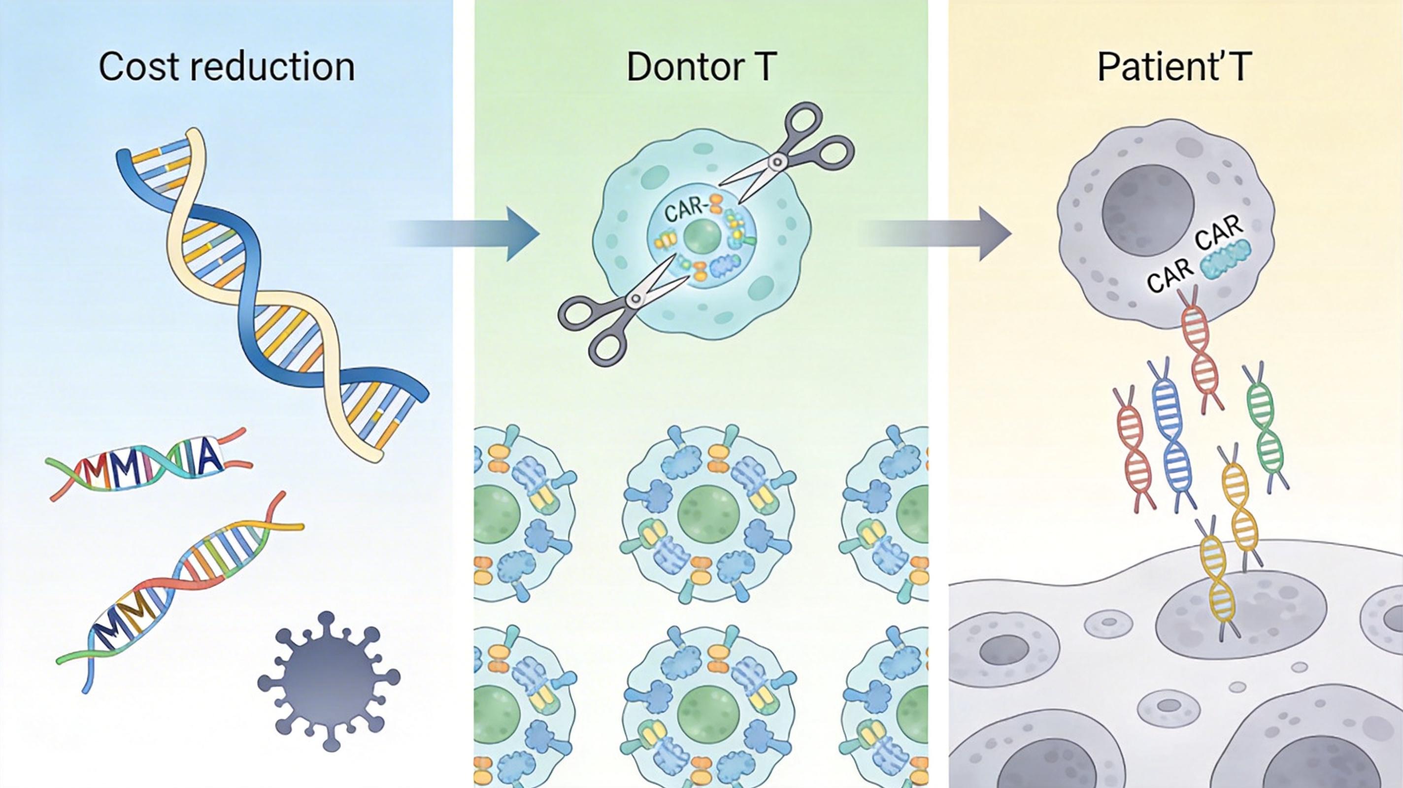 但好消息是,新一代技术正在试图解决这些问题:非病毒载体(比如转座子、mRNA)能替代病毒,把基因转导成本降低90%;通用型CAR T细胞(从健康供体提取T细胞,经基因编辑避免排异)能批量生产,让成本降到原来的十分之一;甚至还有“体内CAR T”技术——直接把CAR基因递送到患者体内的T细胞上,省去体外培养的所有步骤。
