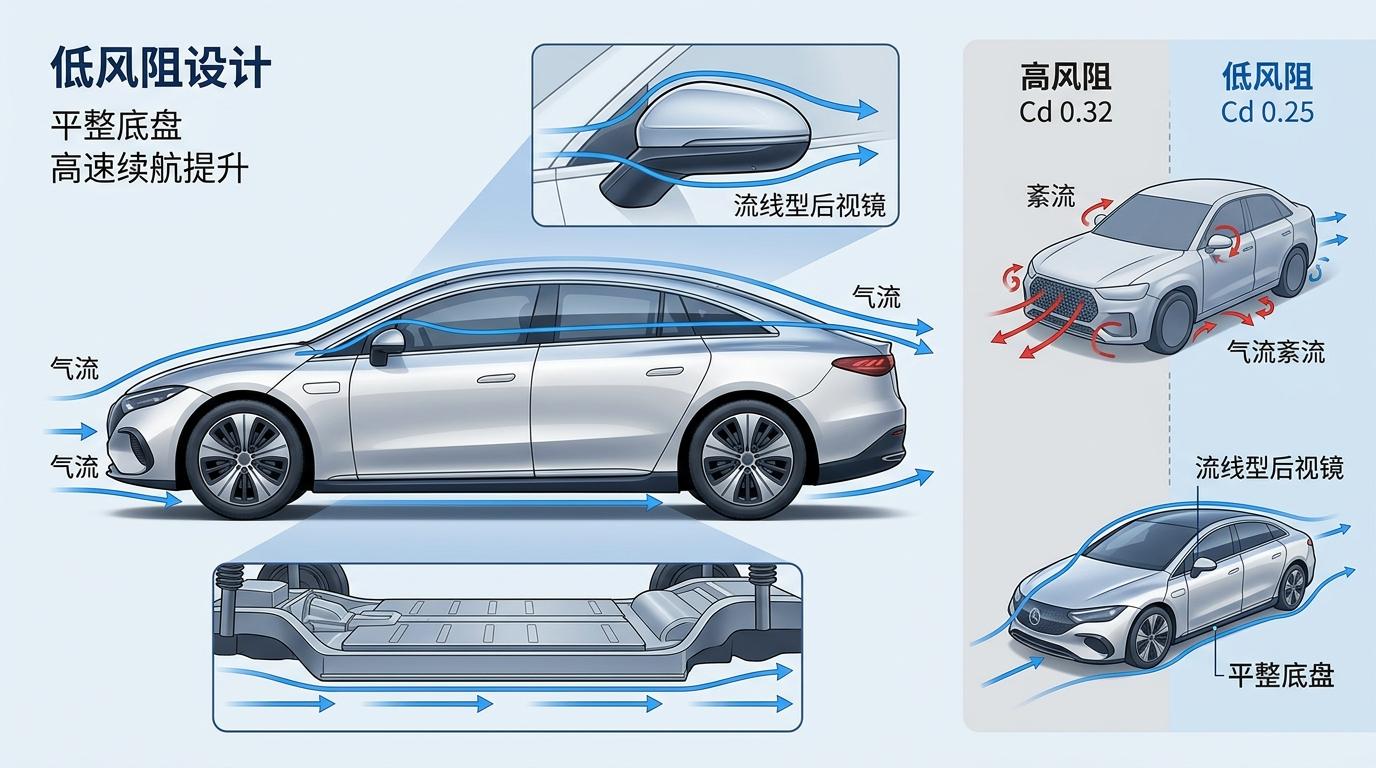 再看车身的‘隐形减重’:把风阻系数从0.32降到0.25,相当于给车卸下了50公斤的电池。比如特斯拉Model 3的车身底部几乎完全平整,后视镜做成流线型,这些细节加起来,能让高速续航提升15%以上。