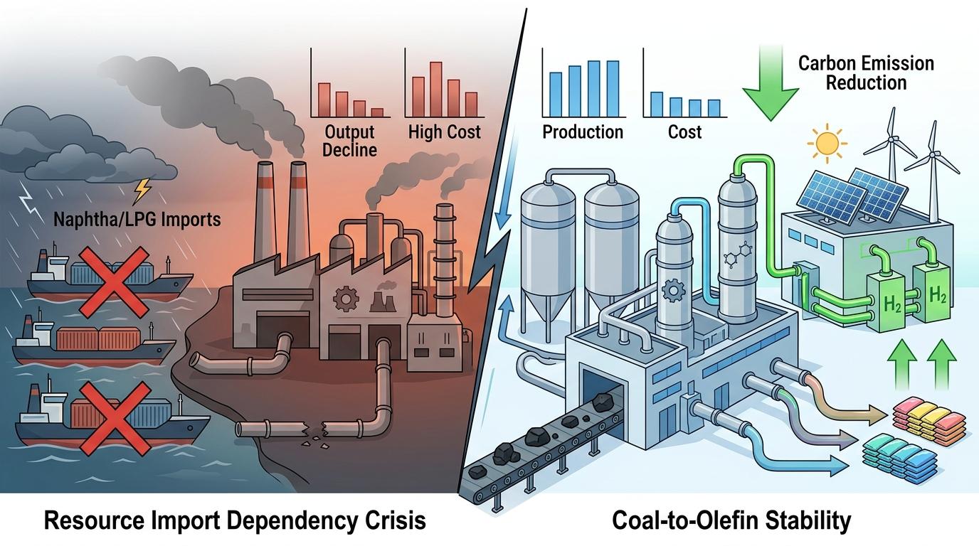 这场变局里,中国本土企业也在悄悄改写规则。当依赖中东原料的日韩工厂陷入困境时,中国的煤制烯烃企业反而成了“稳定器”——他们用煤炭作为原料,不需要进口石脑油或LPG,能在原料危机里保持生产。比如内蒙古的神华煤制烯烃项目,新一代技术集成绿色氢气后,碳排放降低了77%,成本还比传统路线低8%。