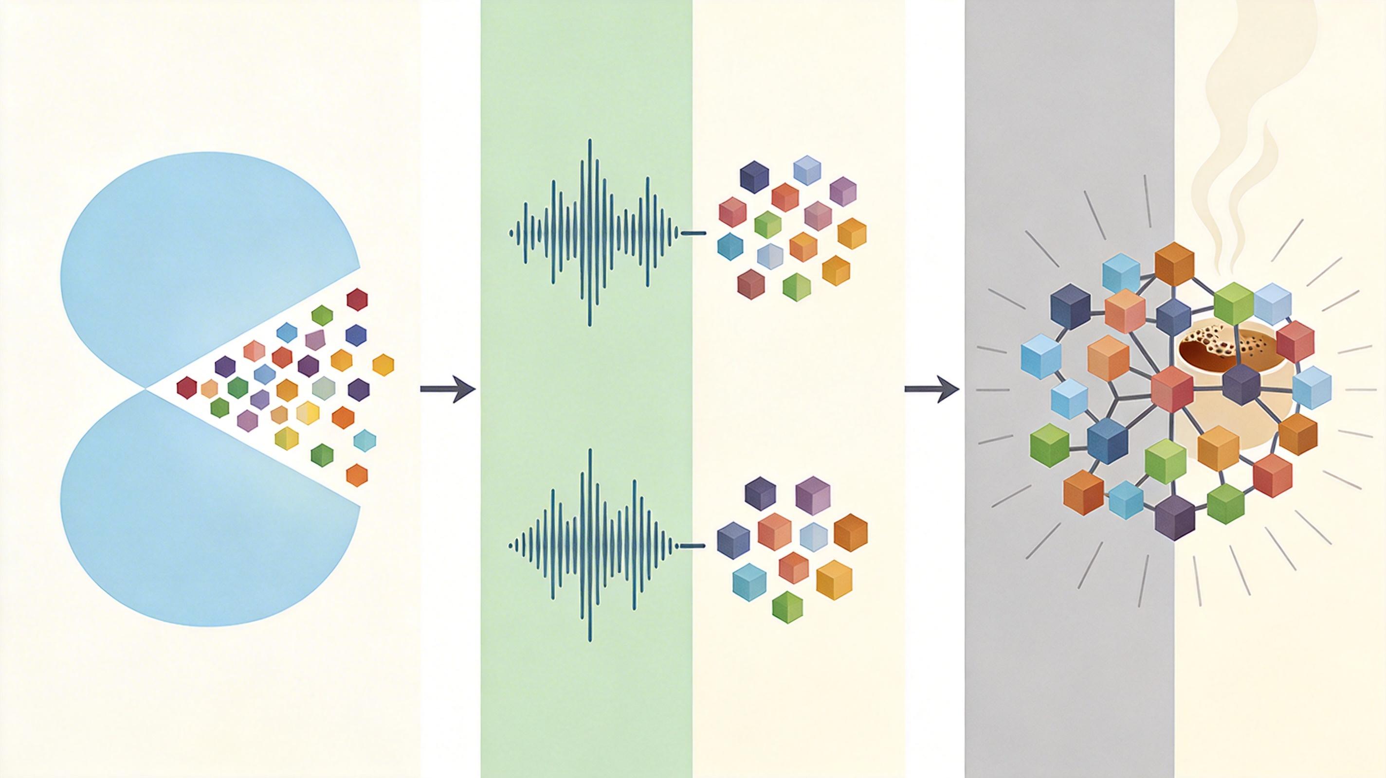 你可以把传统多模态AI理解成“组装电脑”——文本、图像、音频各有独立的“配件”,最后用连接线拼在一起。这种模式下,AI处理信息时总隔着一层,比如看图片时只能先转成文本描述,再交给语言模型理解,难免丢信息、慢半拍。 GPT-6的原生多模态架构更像“人脑”:所有模态信息从输入开始就被转换成统一的“神经信号”(token),塞进同一个Transformer模型里。视觉的像素、音频的波形、文本的词汇,在模型内部直接对话,不需要额外的翻译环节。就像你看电影时,画面、台词、背景音乐是同时钻进脑子里,自然融合成完整感受的。 但真实的机制比这更精确:它用向量量化技术把图像拆成离散的视觉token,用神经编解码器把音频分成语义和声学两层token,再和文本token排成一串,让模型的注意力机制自由捕捉跨模态的关联。比如看到一张咖啡拉花图,它能同时“看见”奶泡的纹理、“读懂”拉花的图案含义,甚至“联想到”咖啡的香气——这是拼接式模型做不到的深度融合。