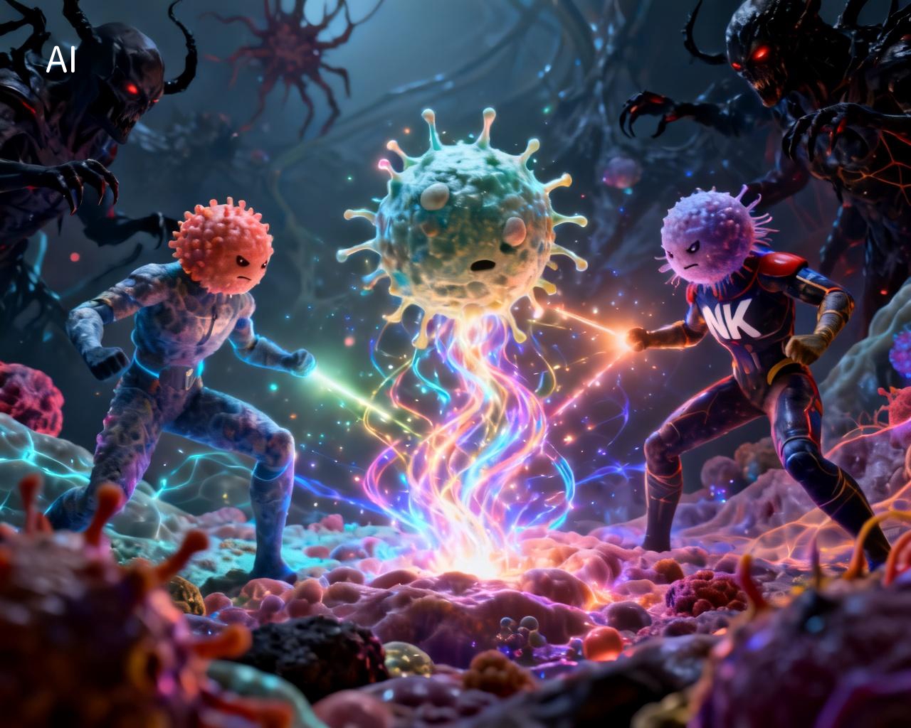 在这场叛变中,巨噬细胞扮演了关键的“变节者”角色。这些本应吞噬病原体、保卫家园的哨兵,一旦进入肿瘤微环境,就会被癌细胞“洗脑”,转化为肿瘤相关巨噬细胞(TAMs)。它们不再是卫士,而是变成了助纣为虐的叛军,通过释放抑制信号,为肿瘤建立起一道坚固的免疫壁垒,让最具杀伤力的NK细胞和CD8+ T细胞等“特种部队”陷入沉睡或耗竭状态。