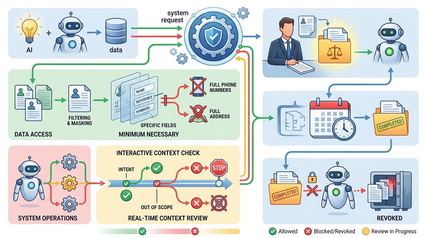 动态权限管理的核心是“最小必要”和“实时调整”:AI要调用客户数据时,只给它读取特定字段的权限,不能让它看到完整的手机号和地址;AI要执行系统操作时,必须经过实时的上下文审核,不符合任务意图的操作直接拦截。比如法律事务所的AI,只能访问当前案件的相关资料,结案后自动收回所有权限。