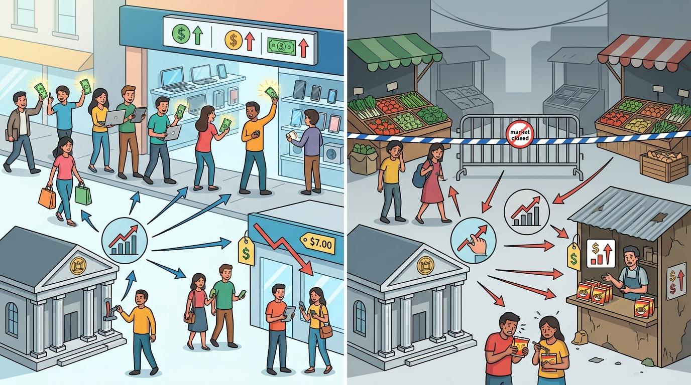 供给侧通胀就像你家楼下的菜市场突然被封了——不是你不想做饭,是菜价涨到离谱,你不得不顿顿吃泡面。传统的加息工具对付的是“需求侧通胀”:比如大家都抢着买手机,商家坐地起价,加息让你贷款变贵,自然就少买了。但面对菜市场被封这种事,加息不仅没用,还会让你连泡面都买不起——因为企业的贷款成本也涨了,只能把更多压力转嫁给消费者。