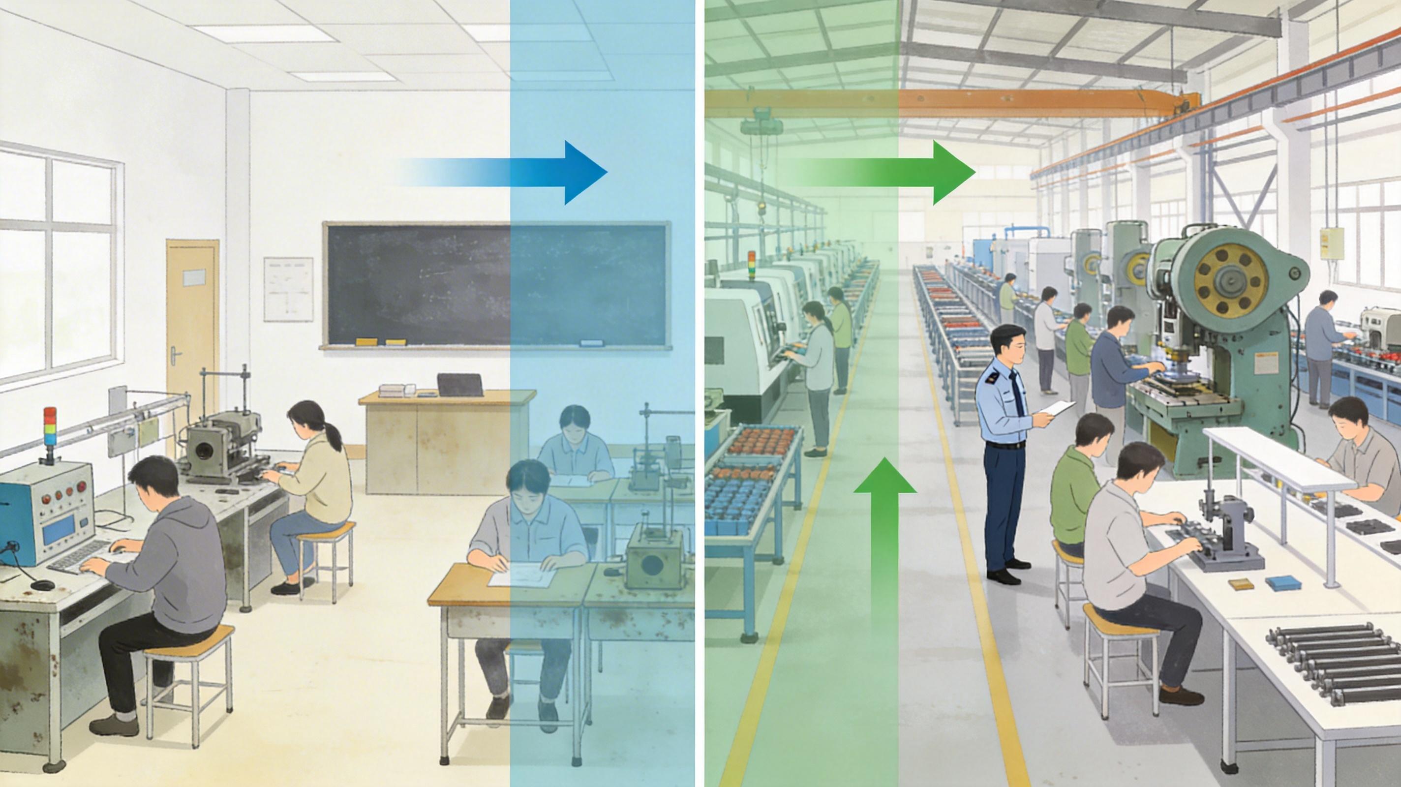 你可以把传统职业教育理解成「学校教一套,企业用一套」——学生毕业进工厂,得重新学半年操作。而现在的「产教融合」,是把学校的教室直接搬到了企业车间:车企派工程师去编教材,学校把实训课开在生产线旁,学生入学就签就业协议,毕业直接上工位。