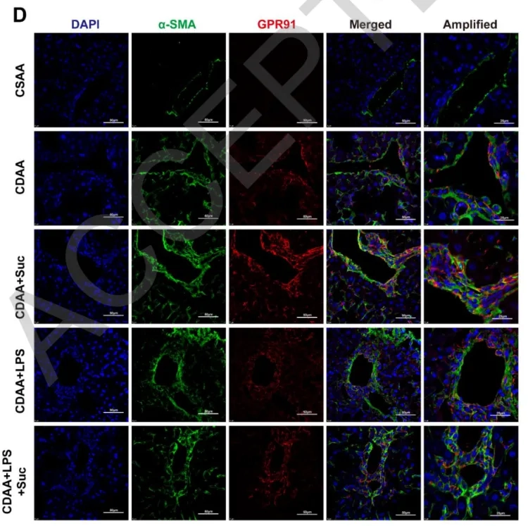 研究团队在小鼠身上做了两组对照实验:给野生型小鼠注射琥珀酸,原本的肝纤维化程度直接翻倍;而给肝星状细胞特异性敲除GPR91的小鼠喂同样的高脂高糖饮食,它们的肝脏胶原蛋白沉积量比野生型小鼠低了40%,纤维化标志物水平直接腰斩。