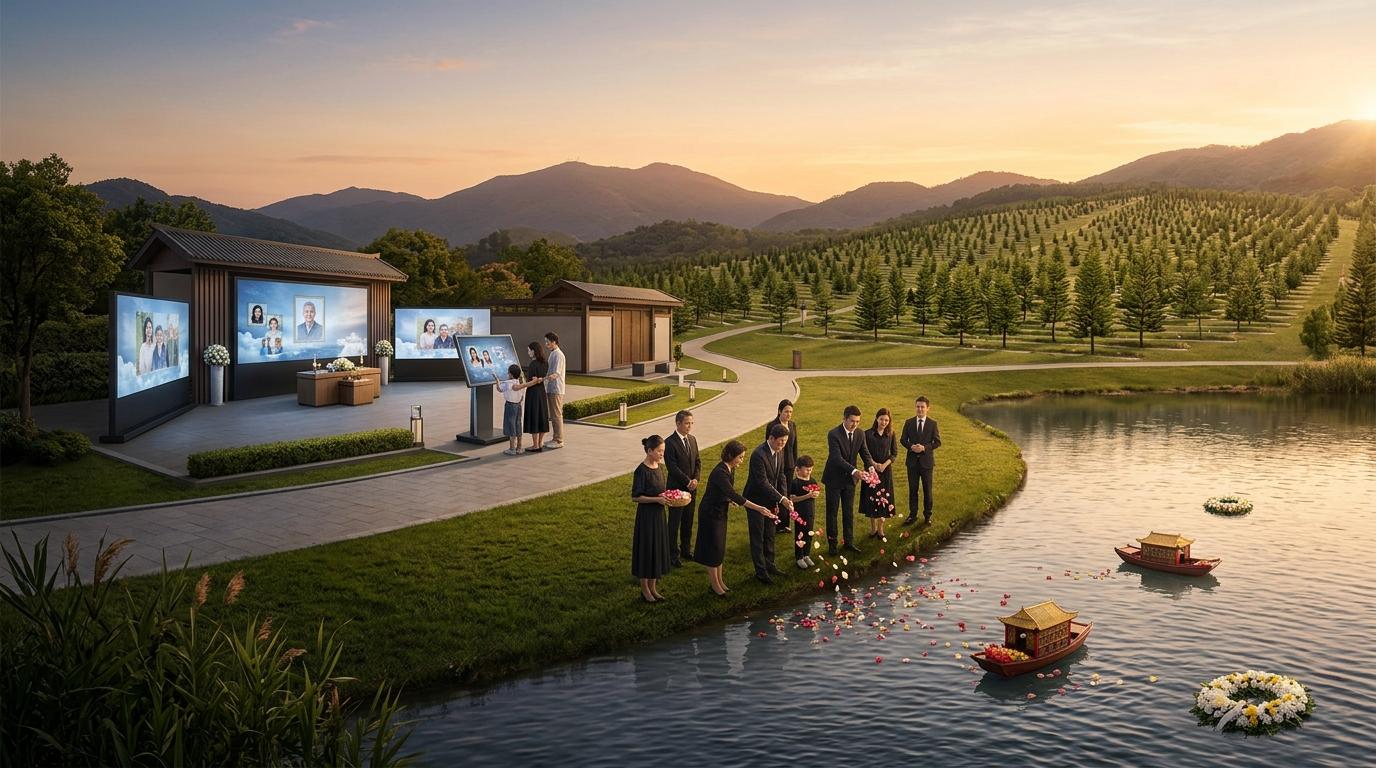 传统殡葬企业的数字化转型,更像是这场变革的注脚。云祭扫、AI追思等服务试图用技术拓展纪念的边界,但目前仍停留在“附加服务”的层面——毕竟靠土地盈利的基因,很难在短时间内转向科技驱动。真正的行业未来,或许不在虚拟的数字空间,而在现实里那些种满松树的生态墓园,在集体海葬时飘向远方的花瓣中。