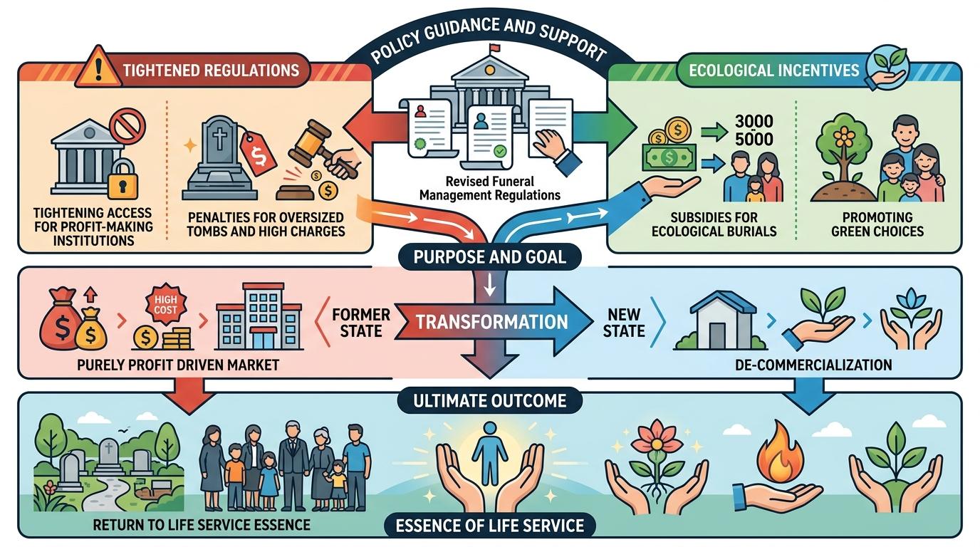 政策的引导则给了这场变革最坚实的支撑。新修订的殡葬管理条例收紧了营利性机构的准入,明确对超大墓穴、虚高收费的处罚标准;多地对生态安葬给出3000到5000元的补贴,让绿色选择有了实际的经济激励。这些举措并非限制需求,而是在为殡葬行业“去商业化”,让它回归到“生命服务”的本质。