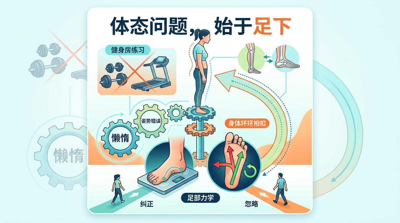 我们总把体态问题归咎于懒惰或姿势错误,却忘了身体是一个环环相扣的整体。那些在健身房里练不回来的腰痛,那些怎么掰都不正的腿型,答案或许就在你每天踩在地上的双脚里。