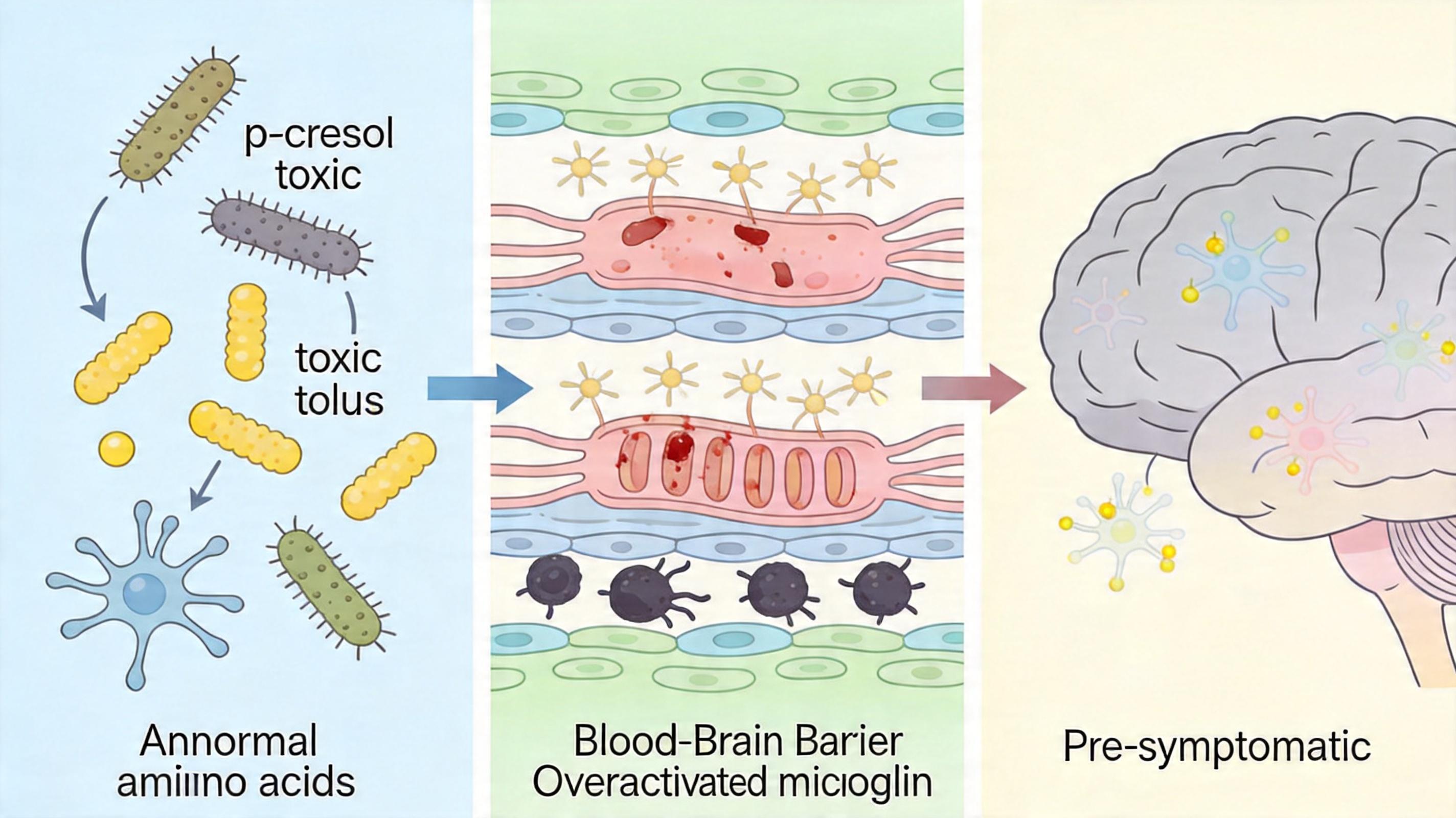 研究团队对比了135名伴RBD帕金森患者、113名不伴RBD患者和102名健康人的血液与粪便样本,发现前者的肠道菌群完全换了“食谱”:原本爱吃膳食纤维的益生菌(比如Faecalibacterium、Roseburia这类产短链脂肪酸的菌群)数量骤减,而专门分解蛋白质和肠道黏液层的细菌变得异常活跃。 这些“叛变”的细菌分解食物里的酪氨酸和苯丙氨酸,会产生一种叫p-甲酚的有毒物质。它在体内转化为硫酸盐和葡萄糖苷酸盐后,能轻易穿透血脑屏障——就像撬开了大脑的防盗门,不仅会直接损伤神经元的线粒体,还会激活炎症反应,让大脑里的“清道夫”小胶质细胞失控攻击神经细胞。更关键的是,这种毒素在还没出现手抖等运动症状的前驱期患者体内就已经存在,说明它可能是触发疾病的“先遣队”。