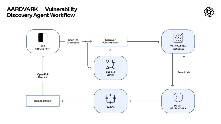 它的工作流程分为四个精心设计的阶段: 首先是威胁建模。当接入一个新的代码仓库时,Aardvark会通读全部代码,理解其架构、设计目标和业务逻辑,从而构建一个全面的安全威胁模型,就像一位建筑师在审查蓝图。 其次是持续扫描。它会监控每一次代码提交,将其与整个代码库的上下文及威胁模型进行比对,实时发现新增的风险。它能理解开发者的“意图”(Pull Request中的描述)与“现实”(实际的代码变更)是否一致。 然后是沙箱验证。发现潜在漏洞后,Aardvark会在一个隔离的沙箱环境中,尝试编写并运行测试代码来触发漏洞,以验证其真实可利用性。这极大地降低了误报率,让开发者收到的每一个警报都掷地有声。 最后是智能修复。与OpenAI Codex协同,Aardvark会为每一个已验证的漏洞生成修复补丁,并附上清晰的解释和代码标注,供开发者一键审查和应用。