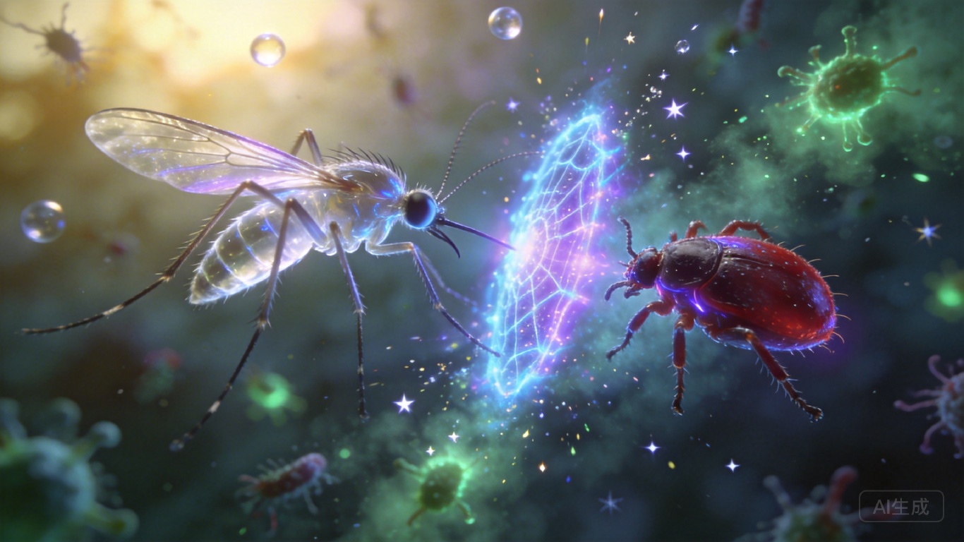 当你在夏夜拍死一只蚊子,或是在草丛中扯下一只蜱虫时,你可能没意识到——你打断了一场持续了数千万年的分子战争。这些看似渺小的吸血者,每年要把疟疾、登革热、莱姆病等疾病传给数亿人;而我们依赖了几十年的化学杀虫剂,正因为它们的抗性进化逐渐失效。