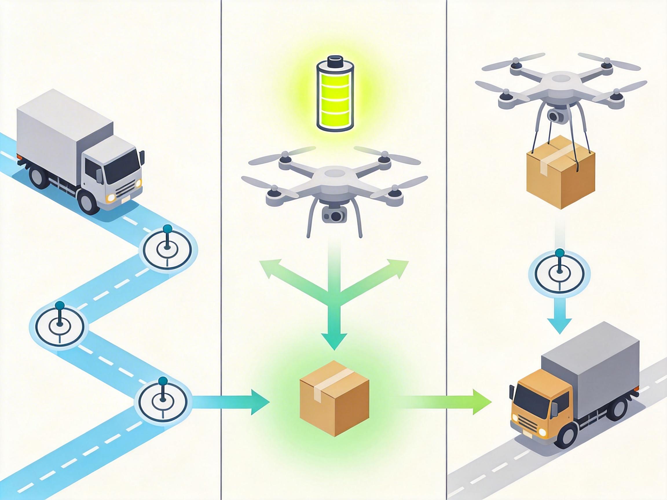 早高峰的上海街头,一辆配送卡车刚停稳,无人机就载着加急件冲天而起——这不是科幻片,是2026年正在普及的「空地协同配送」。但你可能没意识到,当快递里混着「必须先送的生鲜」「晚到就失效的疫苗」,再先进的无人机也会乱套:卡车该先跑哪条线?无人机该接哪单?稍有差池,要么生鲜变质,要么疫苗失效。