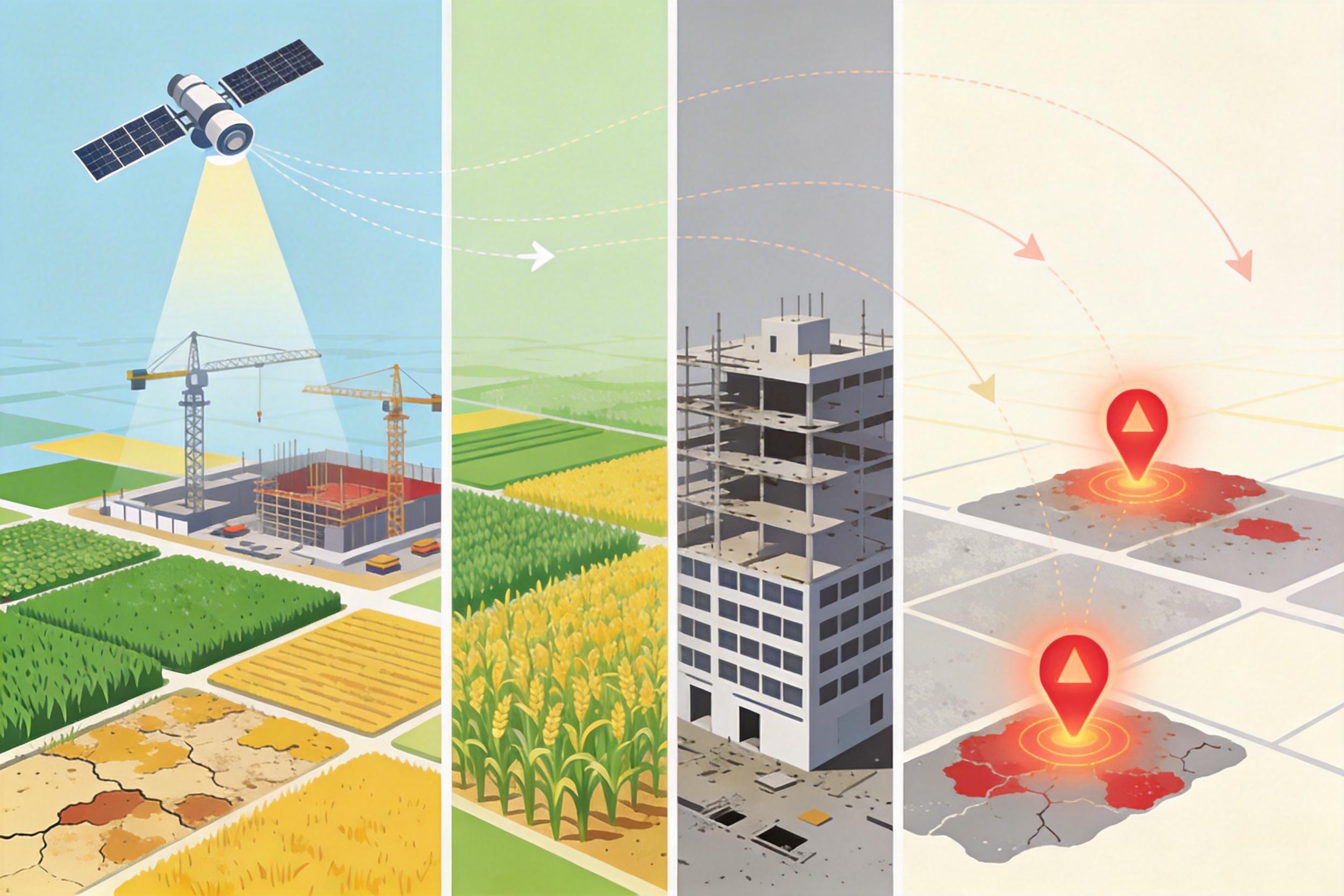 这颗0.5米分辨率的卫星,能看清农田里的作物品种、基建工地的塔吊数量,甚至能通过植被指数判断作物是否缺水、是否遭遇病虫害。它不是拍一张照片就完事,而是能按天、按周高频次成像,结合AI算法自动对比变化:比如原本应该绿油油的高标准农田突然变黄,系统会立刻标记风险;本该封顶的写字楼三个月没动静,预警信号会直接推给风控人员。