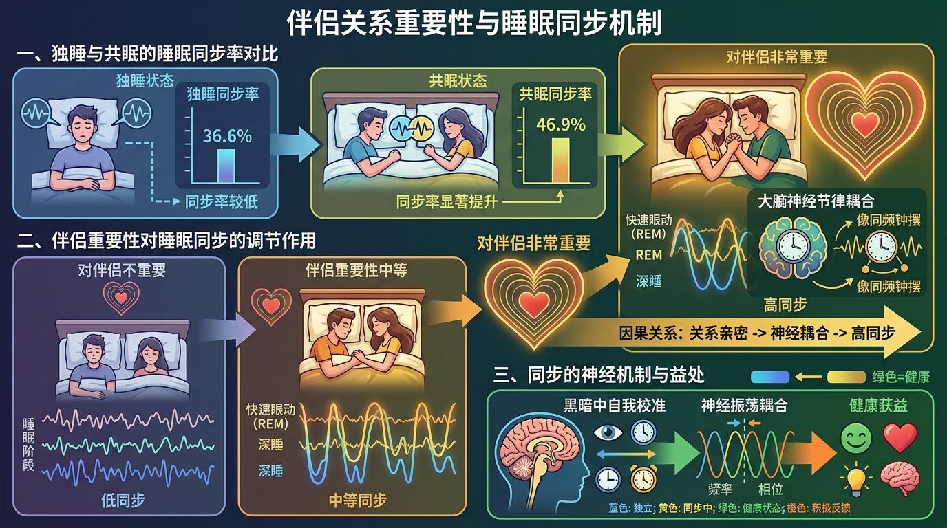 更有意思的是,这种睡眠结构的变化,和伴侣关系的亲密度直接挂钩。研究显示,越觉得伴侣重要的人,睡眠阶段的同步率越高——从独睡时的36.6%提升到共眠时的46.9%。这种同步不是简单的同时翻身,而是大脑神经节律的微妙耦合,像两个同频的钟摆,在黑暗里悄悄校准着彼此的节奏。