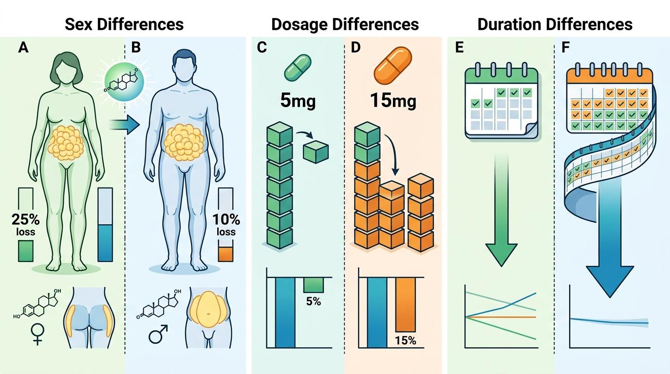 比如女性用替西帕肽的减重效果比男性高15%-20%,这可能和女性的激素水平、脂肪分布有关;用15mg高剂量的人平均能减15%体重,5mg低剂量的人效果却弱得多;而坚持用药超过24周的人,减重效果比短期使用者稳定得多。