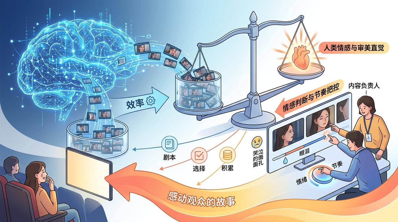 但这并不意味着人类要退出短剧舞台。无锡一家短剧公司的创始人说,AI能生成一万段哭戏,却选不出哪一段能让观众跟着掉眼泪——这种基于长期审美积累的直觉,是AI学不会的。现在有些公司开始把抽卡师往「内容负责人」培养:不是教他们怎么写提示词,而是教他们怎么理解剧本的情绪,怎么判断镜头的节奏。毕竟,AI能解决效率问题,但能让观众记住的,永远是带着人类温度的故事。