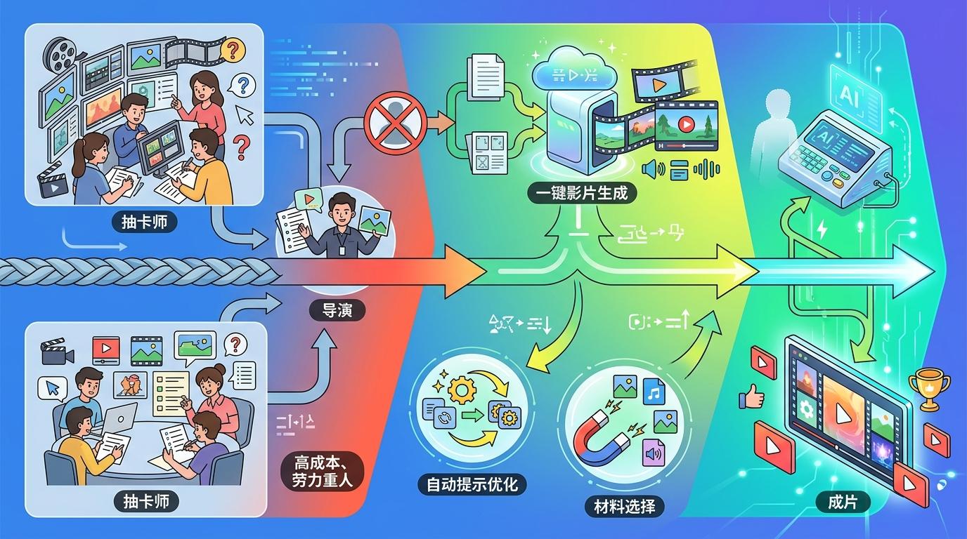 真正的变革,正在从流水线的末端向核心渗透。当字节的一键出片工具能直接把剧本变成带分镜的短剧,当OpenClaw能自动优化提示词并筛选素材,抽卡师的「人肉筛选」工作,就成了可以被算法替代的冗余环节。已有头部公司开始裁员,原本一个导演配五个抽卡师,现在可能只需要一个——甚至不需要,AI自己就能完成从提示词到成片的全流程。