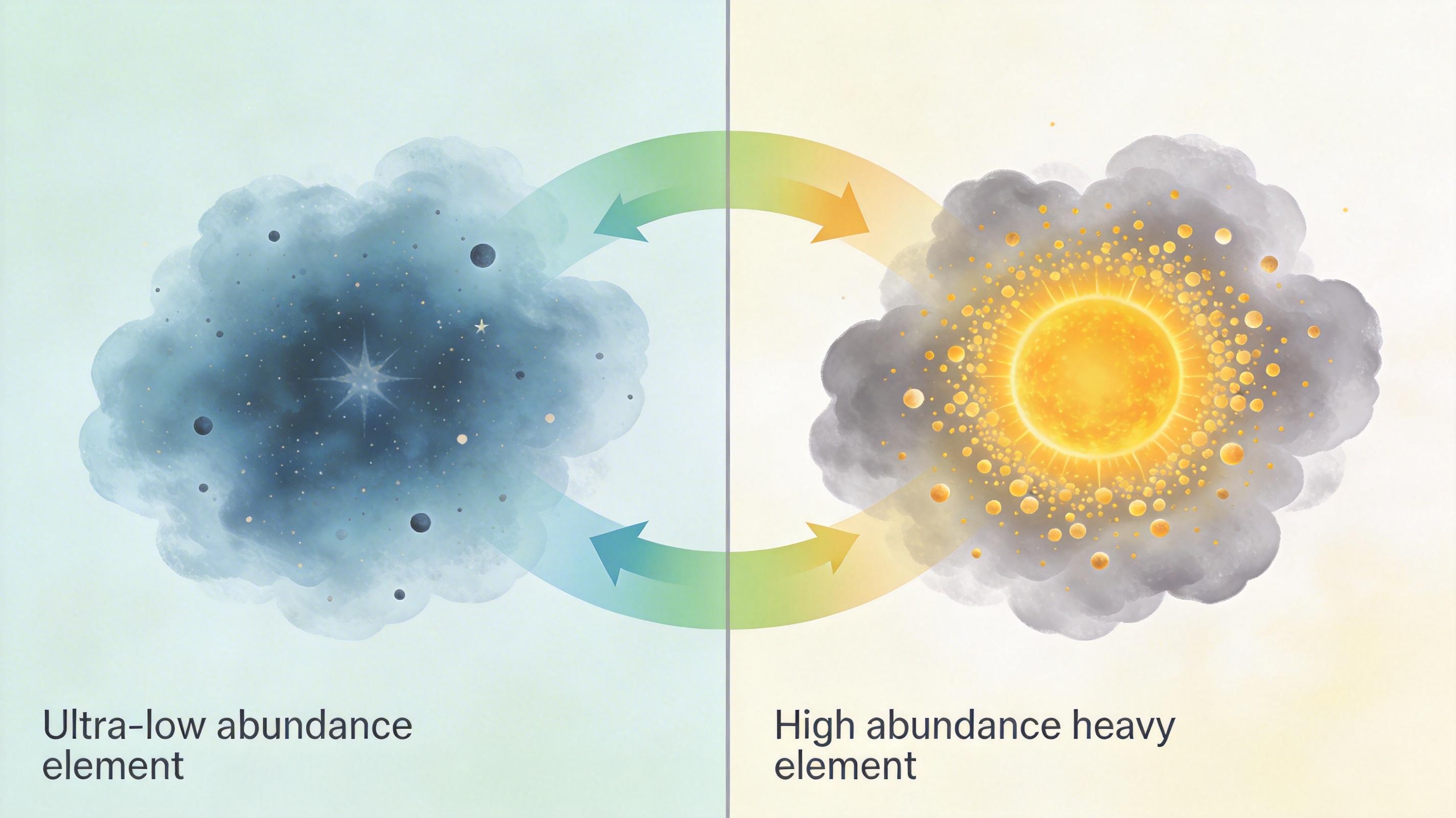 天文学里的“金属”和你首饰盒里的不是一回事——天文学家把氢和氦之外的所有元素都叫“金属”。恒星的金属丰度,就是它体内重元素的占比,这是宇宙演化最直接的时间戳:大爆炸刚结束时,宇宙里只有氢、氦和一点点锂,没有任何金属;第一代恒星在熔炉里炼出重元素,死亡时通过超新星把金属抛洒到太空;后来的恒星从这些“污染”过的气体中诞生,金属丰度也就越来越高。