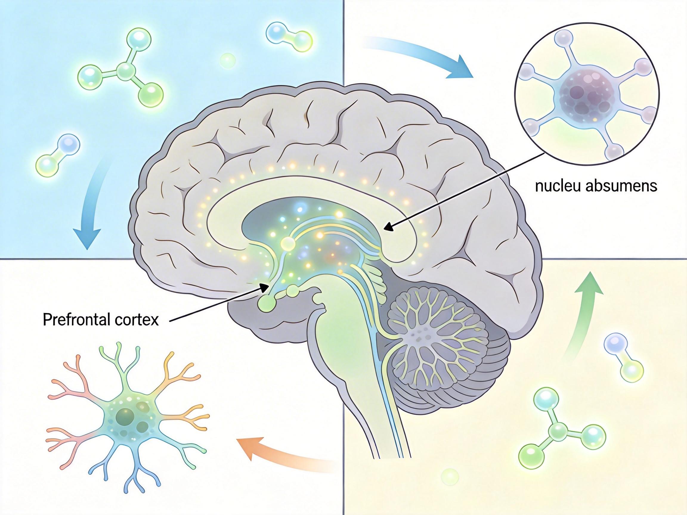 运动时大脑会释放多巴胺、内啡肽等神经递质,这些“快乐分子”本是用来奖励有益行为的,但在成瘾状态下,大脑的奖赏回路会发生病理性改变:伏隔核(奖赏中心)对运动刺激的反应越来越迟钝,前额叶皮层(负责自控和决策)的活性却持续下降。简单说就是,你越来越难从运动中获得满足,同时越来越管不住自己想运动的冲动。