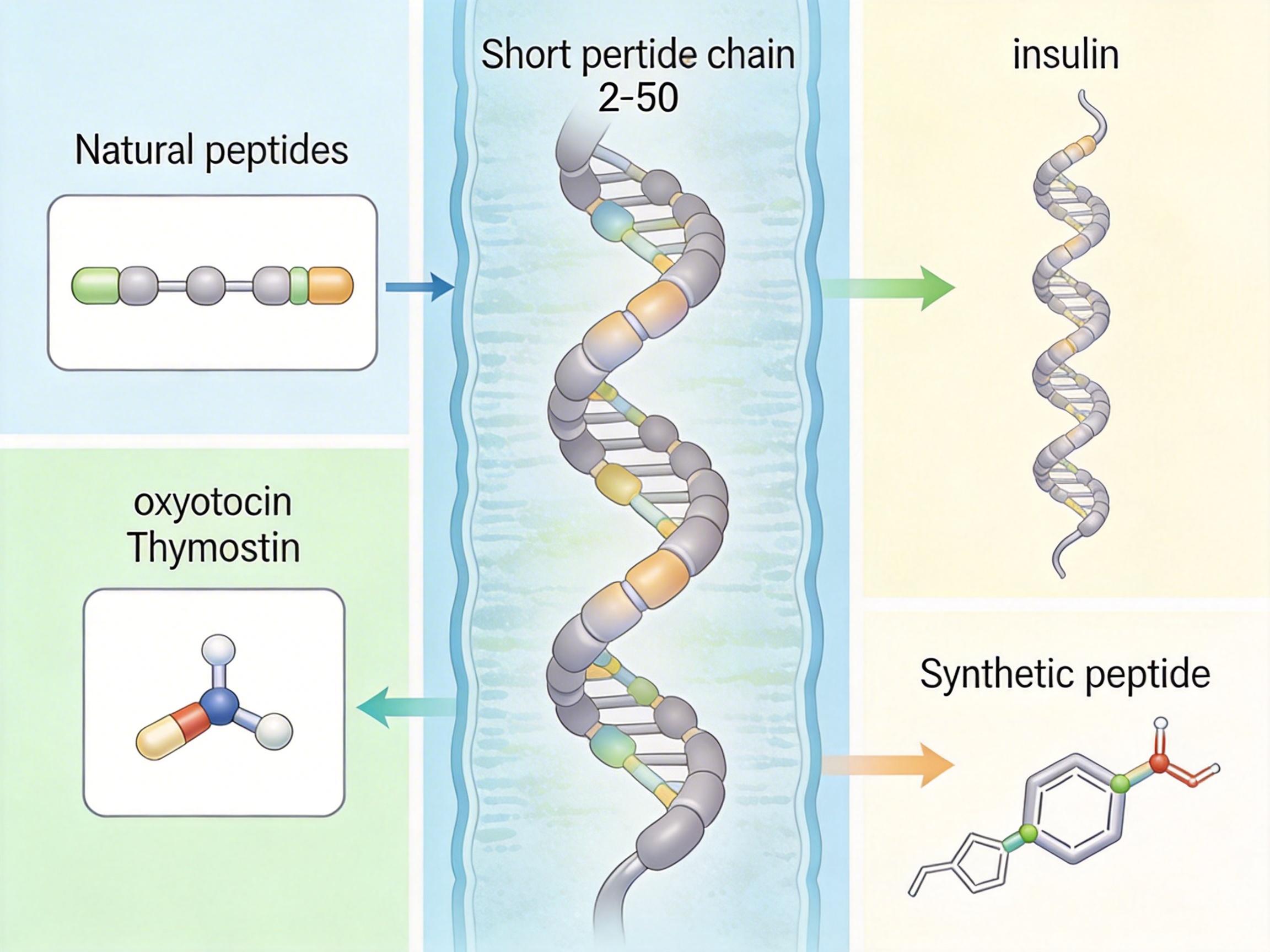 你可以把肽理解成一把把精准的分子钥匙——它们是由2到50个氨基酸组成的短链,比蛋白质小,又比普通小分子药物更具针对性。我们体内天然存在上千种肽:胰岛素调节血糖,催产素维系亲密关系,胸腺素调节免疫。而合成肽,就是科学家模仿这些天然钥匙的结构,人工打造的“仿制版”或“升级款”。