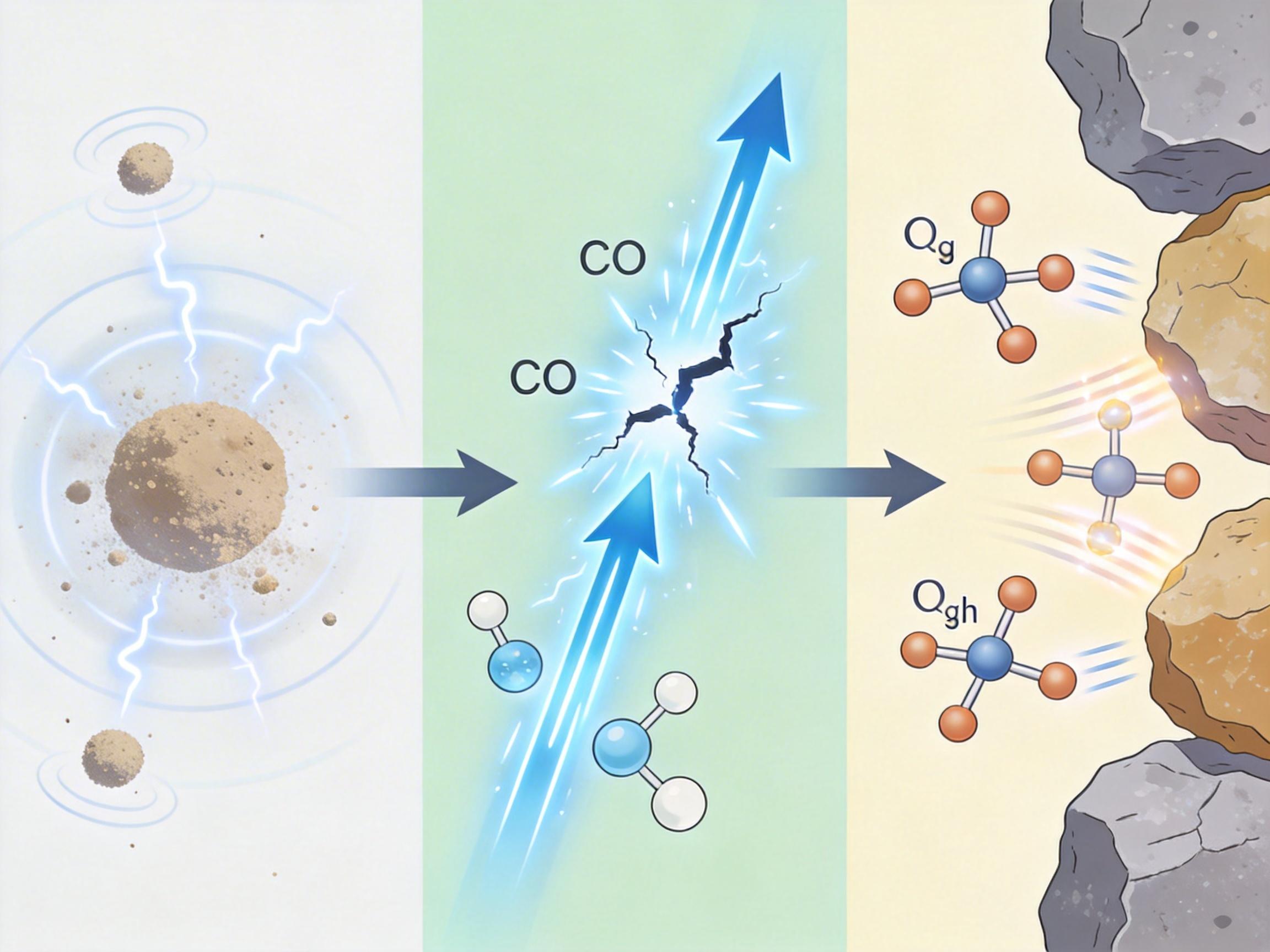 但真实的机制比这更精确:当尘埃颗粒携带的电荷形成10-25kV/m的电场时,会引发电子雪崩效应——少数自由电子在电场加速下撞击CO₂分子,撞出更多电子,像多米诺骨牌一样产生大量高能电子。这些电子能把CO₂、水分子撞碎成自由基,比如氧原子、羟基,这些活跃的“化学碎片”随即开始和地表的氯化物、硅酸盐矿物发生反应。