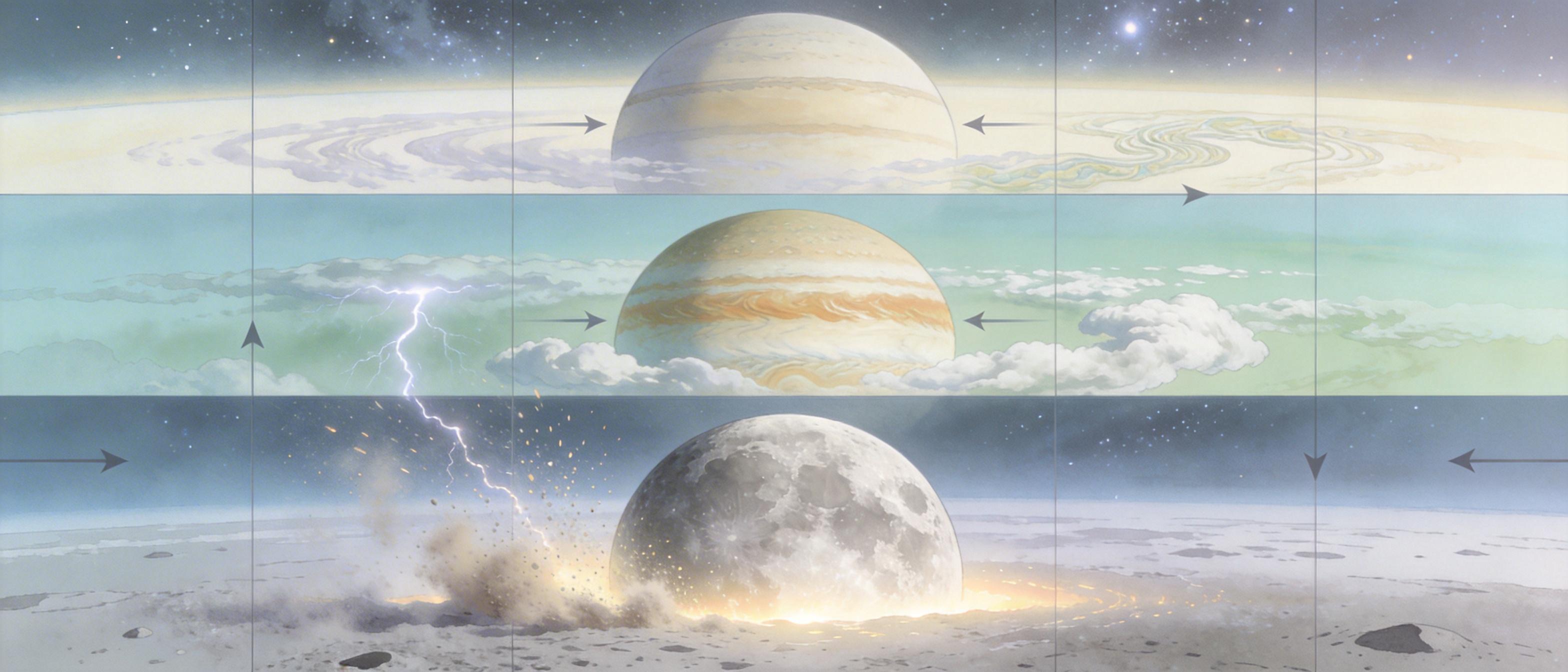 火星的发现,让科学家开始重新审视整个太阳系的“静电活性”。金星的云层里,硫酸液滴和未知晶体在对流中碰撞,同样可能积累电荷引发闪电;月球表面的尘埃在紫外照射和太阳风中,会带上静电并被抬升,形成诡异的“地平线辉光”;甚至土卫六的有机云层里,也可能存在类似的尘埃带电过程。