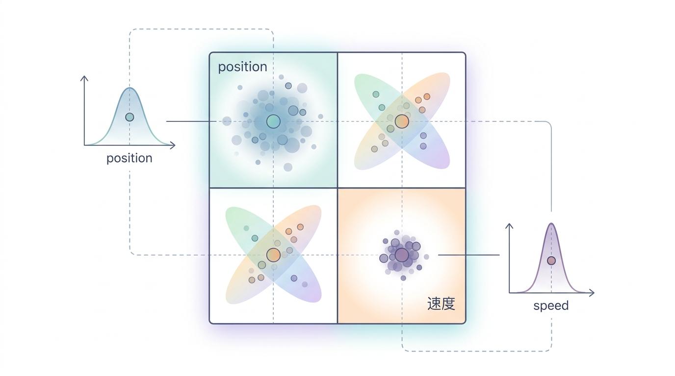 非对角线的元素则是变量间的相关性:如果位置和速度的协方差是正的,说明位置越远,速度越快的可能性越大——就像飞机离雷达越远,可能正在加速逃离。这种相关性让算法能从一个变量的变化,推断另一个变量的趋势。