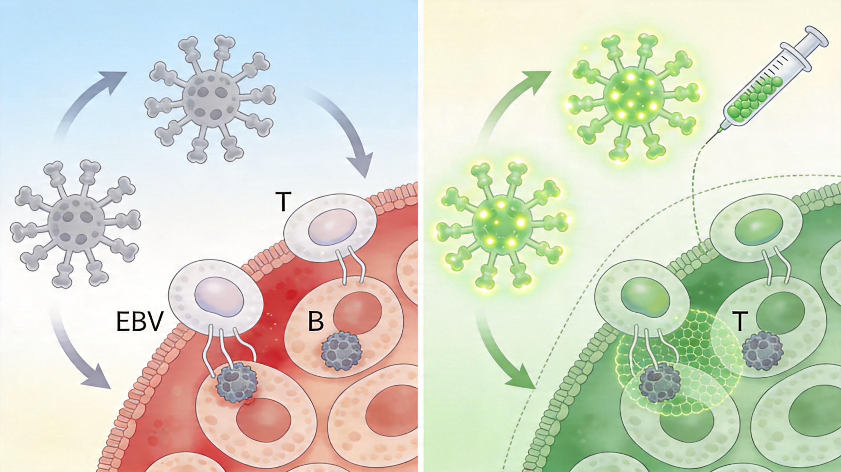 你大概率是它的携带者——EB病毒,一种全球95%成年人都感染过的γ-疱疹病毒。它可能在你小时候通过一次共用餐具、一个亲吻悄悄潜入,然后躲进免疫细胞里潜伏几十年,偶尔引发传染性单核细胞增多症,更可能在你免疫力低下时,诱发鼻咽癌、淋巴瘤甚至移植后淋巴增殖性疾病。过去几十年,人类对它几乎束手无策:疫苗只能降低轻症风险,抗病毒药对潜伏的病毒无效,免疫抑制的移植患者更是随时面临它的致命反扑。直到最近,一组人源化单克隆抗体,终于在这场持续了半个世纪的攻防战里,撕开了一道缺口。