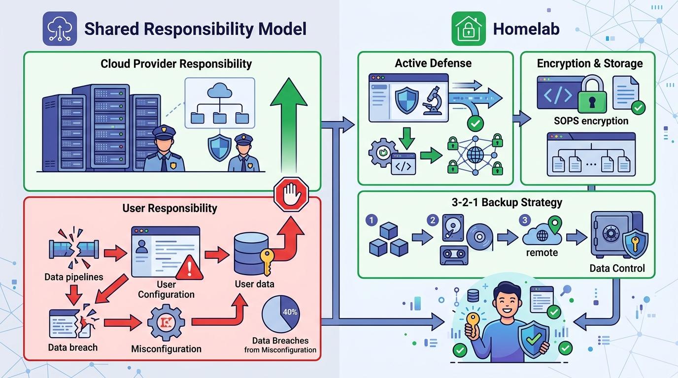 这背后是对云服务“共享责任模型”的清醒认知:云服务商只负责基础设施安全,用户数据的权限配置、加密保护全靠自己。2024年有超过40%的云数据泄露源于配置错误,而Homelab用户能通过自动化脚本定期检查权限,用SOPS工具把敏感密码加密存储在代码仓库,从根源上避免这类风险。当然,这也意味着用户要承担备份的责任——遵循3-2-1原则(3份备份、2种介质、1份异地),才能真正把数据握在自己手里。