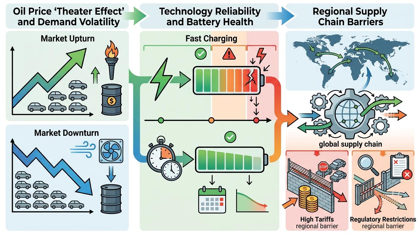 但这场变革并非没有隐忧。油价的“剧场效应”仍在——短期飙升的需求,可能会随着油价回落而降温;快充技术的长期可靠性,还需要时间验证,目前超快充会让电池老化速度加快约16%。更重要的是,全球产业链的区域化壁垒依然存在:部分市场通过高关税和监管限制,试图延缓新能源汽车的渗透速度。