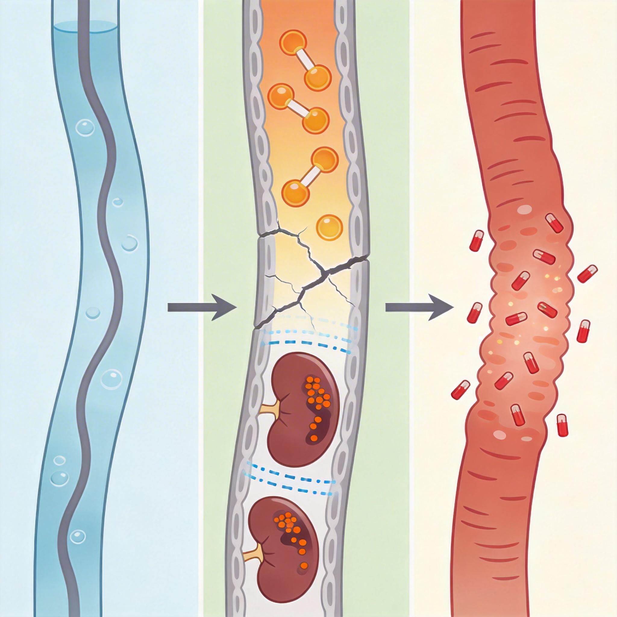 要理解皮质醇的破坏力,不妨把血管比作厨房的橡胶水管。正常情况下,水管的松紧由神经和激素精准调控,而过量的皮质醇就像把水管泡在了热水里——它会让血管壁弹性下降、变硬变脆,还会偷偷拧高水阀:一方面模拟醛固酮的作用让肾脏留住更多钠,增加血液总量;另一方面抑制一氧化氮的生成,切断血管的「舒张信号」。更糟的是,它会让血管对肾上腺素这类收缩因子变得异常敏感,一点点刺激就能让血压飙升。简单说,皮质醇不是直接把血压推高,而是从根本上破坏了血压的调控系统。