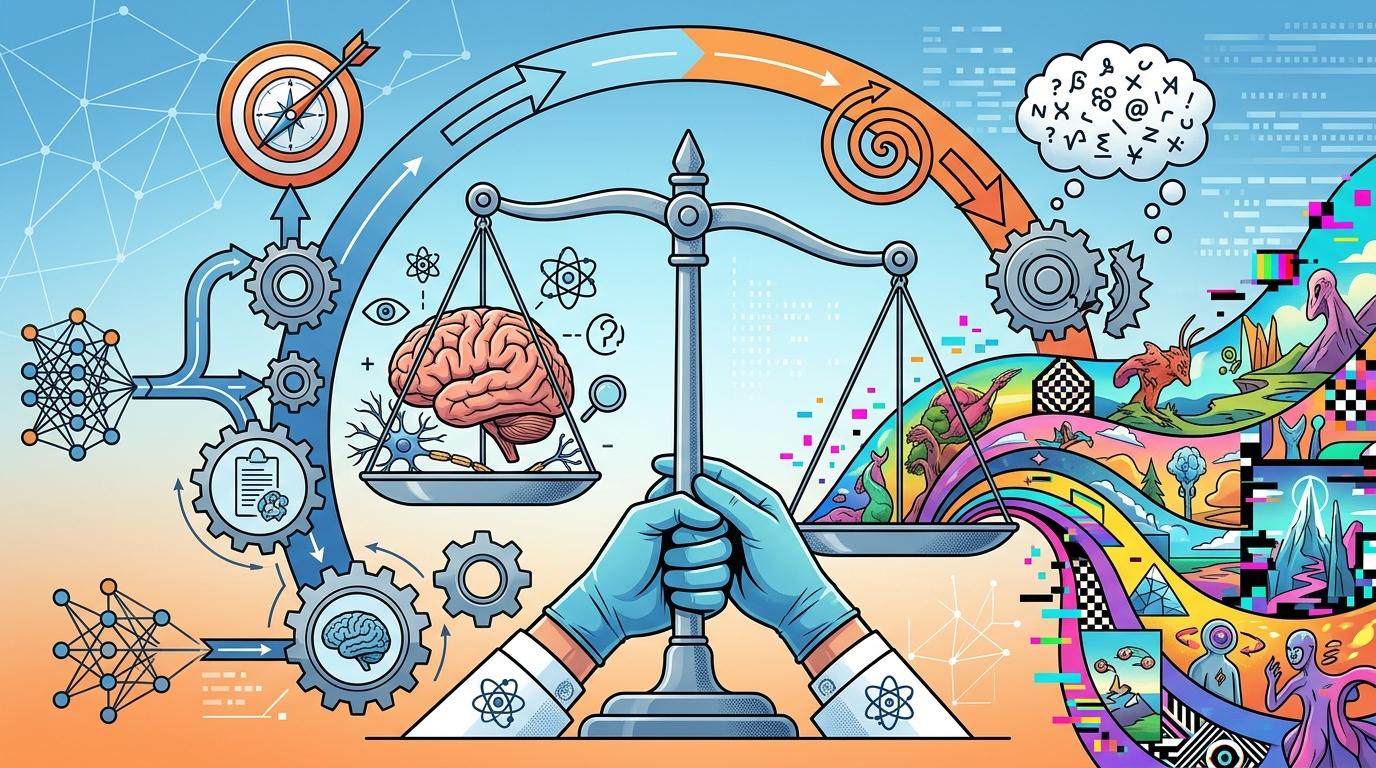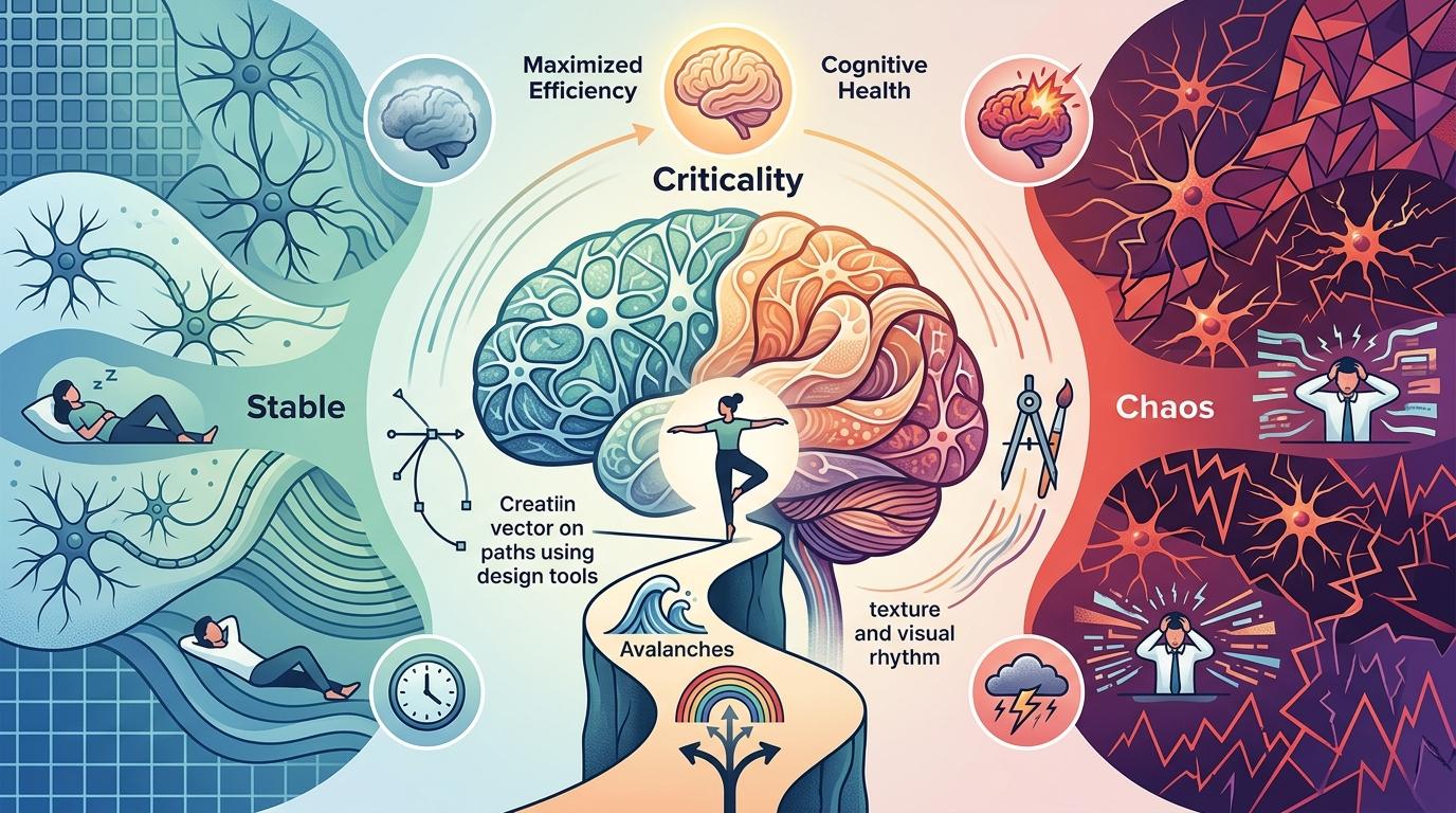 亨根研究的核心,是神经元网络的“临界性”——一种介于稳定与混乱之间的动态平衡,就像走在悬崖边缘的舞者,既能对刺激保持高度敏感,又不会因过度兴奋失控。这种状态让大脑能最大化信息处理效率,一旦偏离,阿尔茨海默症、癫痫等疾病就可能找上门。但要把“临界性”“尺度不变性”这些概念讲清楚,光靠文字和公式就像用描述让盲人理解彩虹。亨根没有绘画功底,却找到了新的工具:用Adobe Illustrator勾勒精确的神经回路结构,用Midjourney生成能传递抽象感的纹理,把神经元雪崩般的活动转化成层层递进的视觉韵律。