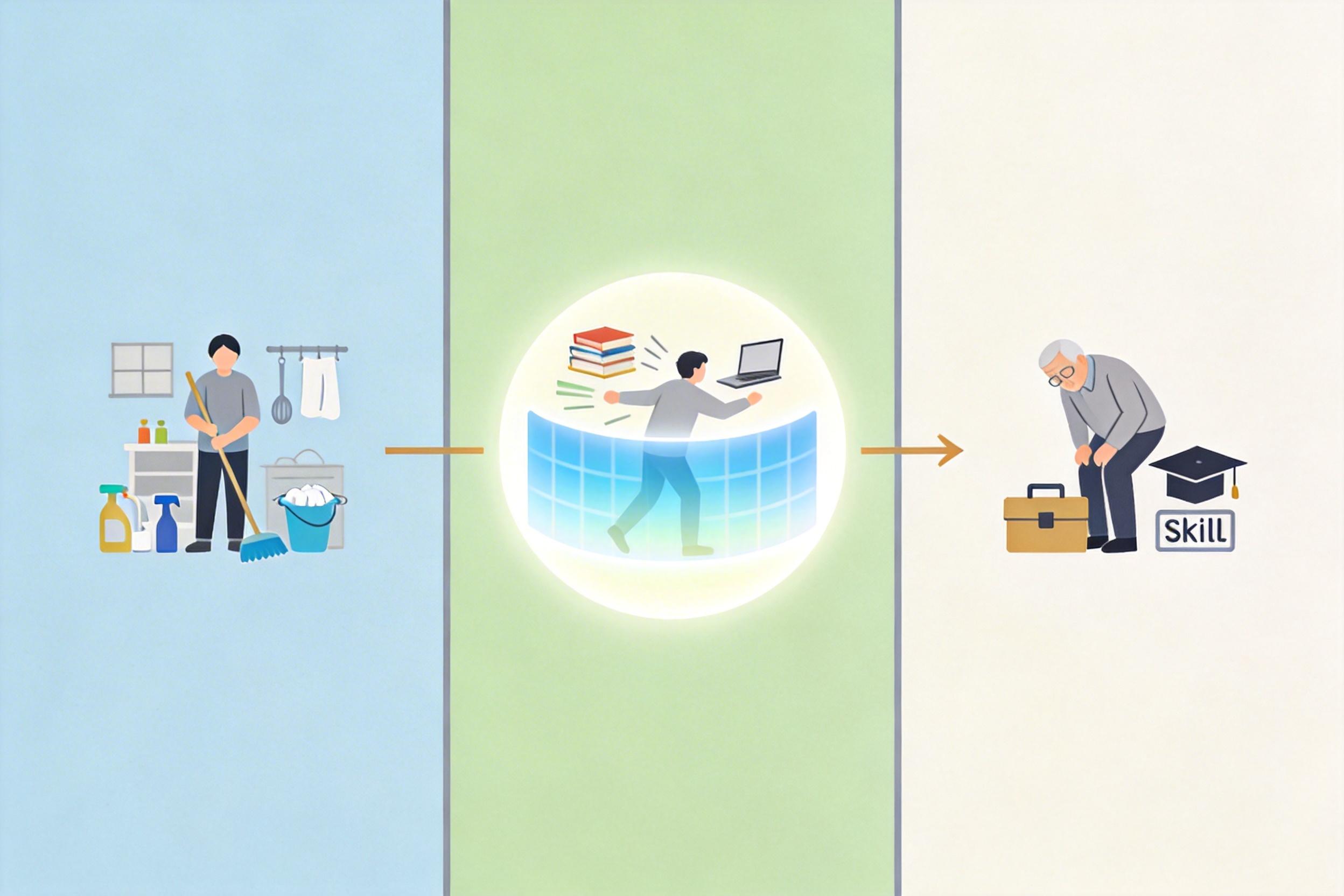 你可以把职业降级想象成:原本在写字楼里做数据分析、靠逻辑和沟通拿薪水的你,失业后只能去做每天重复录入表格的工作——不是你不想找更好的,而是之前攒下的专业技能,在AI面前已经不值钱了。这就是高盛报告里的核心逻辑:AI淘汰的不只是岗位,更是岗位背后的技能价值。