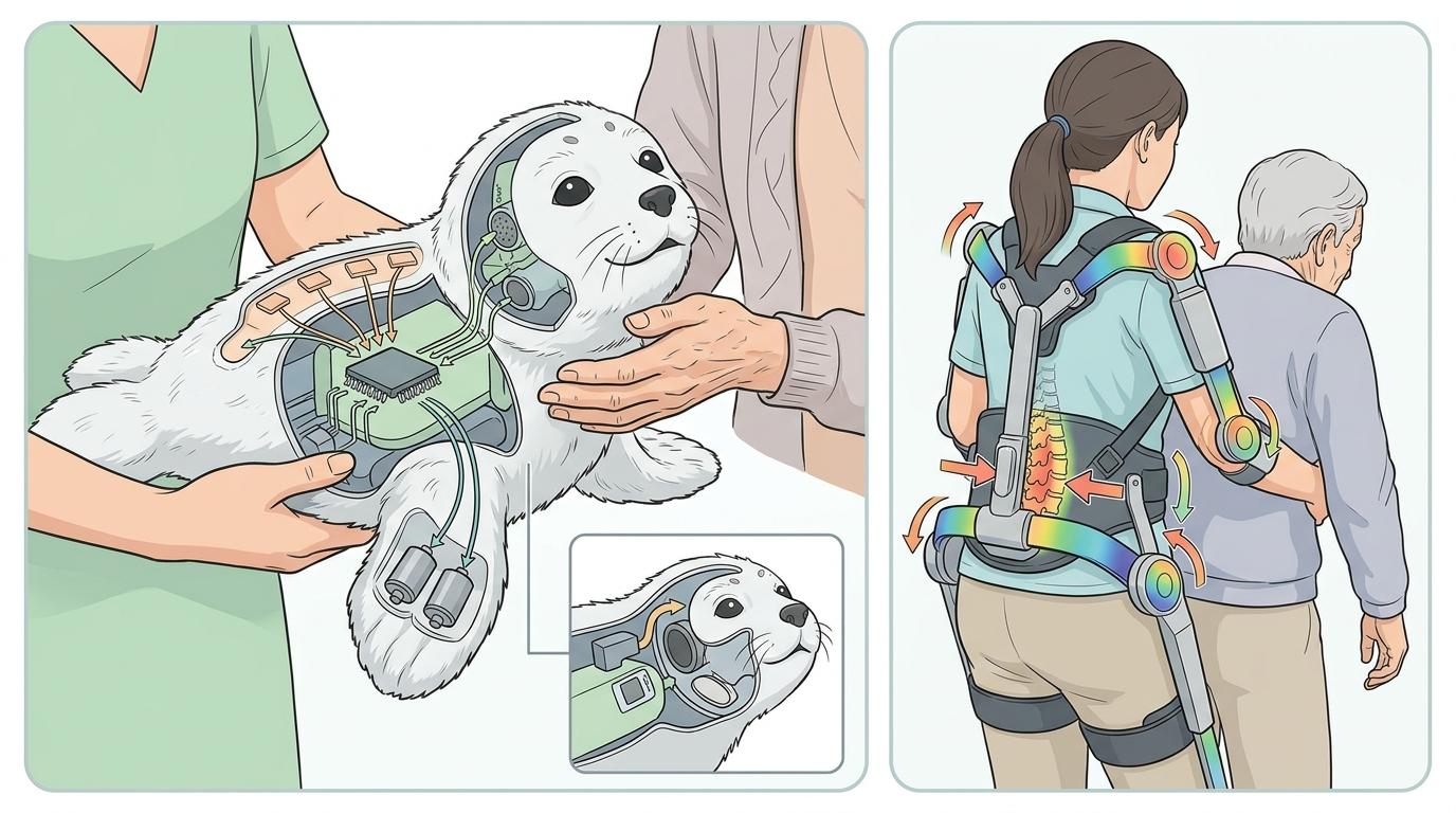 最能体现日本特色的,是物理AI在医疗和护理领域的应用。在东京的一家养老院,Paro海豹机器人能通过触觉和声音回应老人的抚摸,缓解痴呆患者的躁动;外骨骼机器人能帮护理人员抬起体重80公斤的老人,减少腰伤的风险。这些机器人不是为了替代护理人员,而是帮他们分担最耗体力、最重复的工作,让护理人员能花更多时间和老人交流。